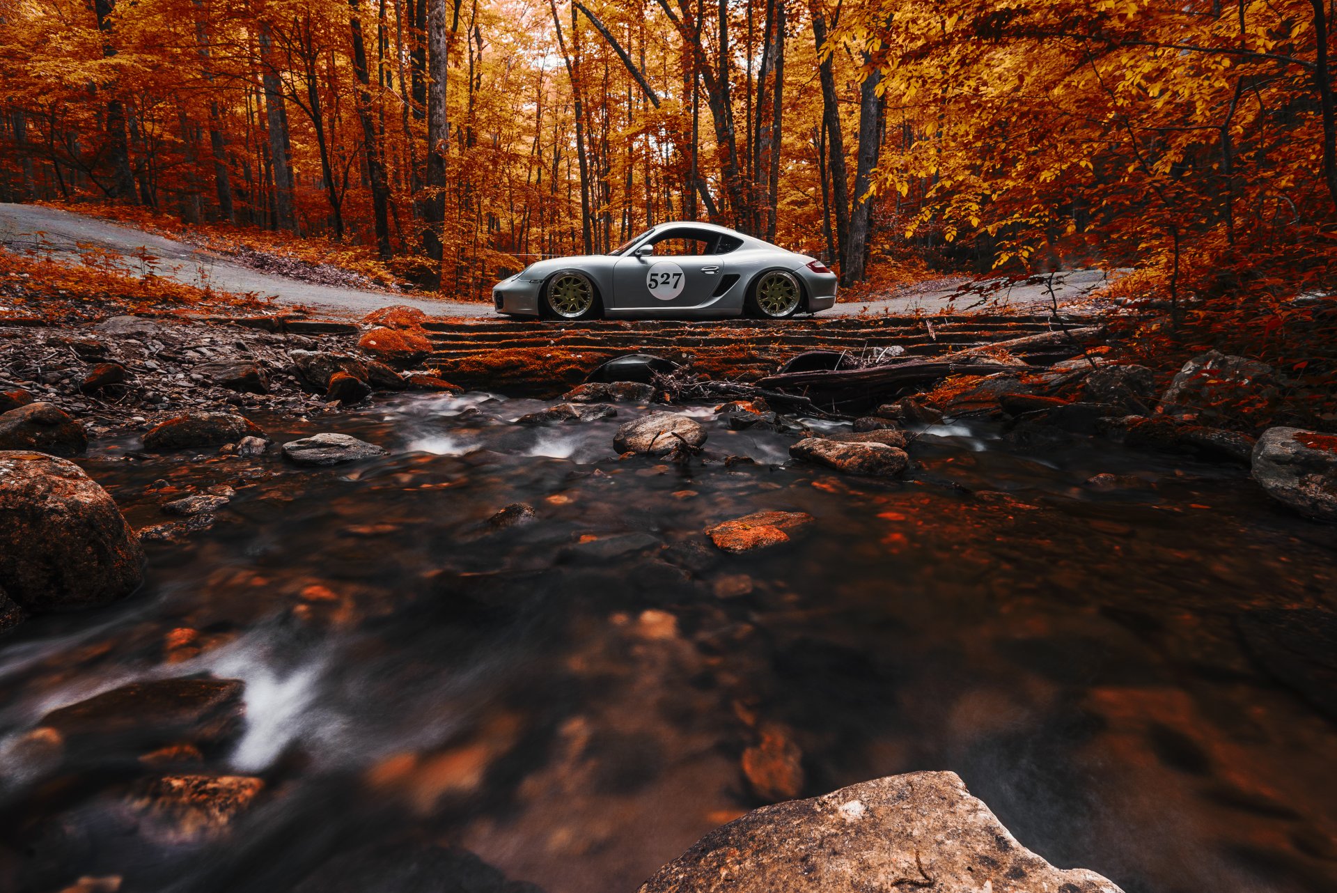 Le coucher de soleil orange est figé dans le ciel. La brume enveloppait les collines et la forêt mystérieuse
