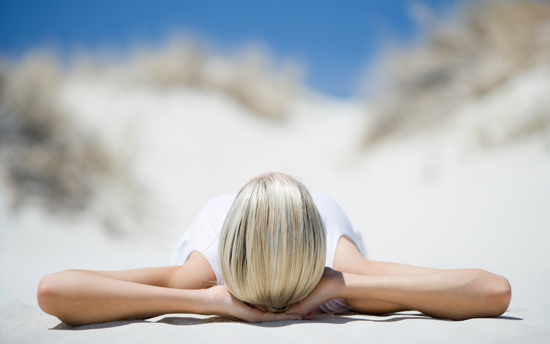 Fille au repos sur la plage de sable