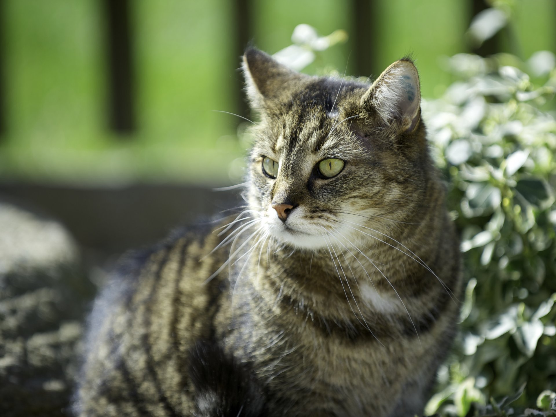 Chat dans une journée ensoleillée parmi les plantes