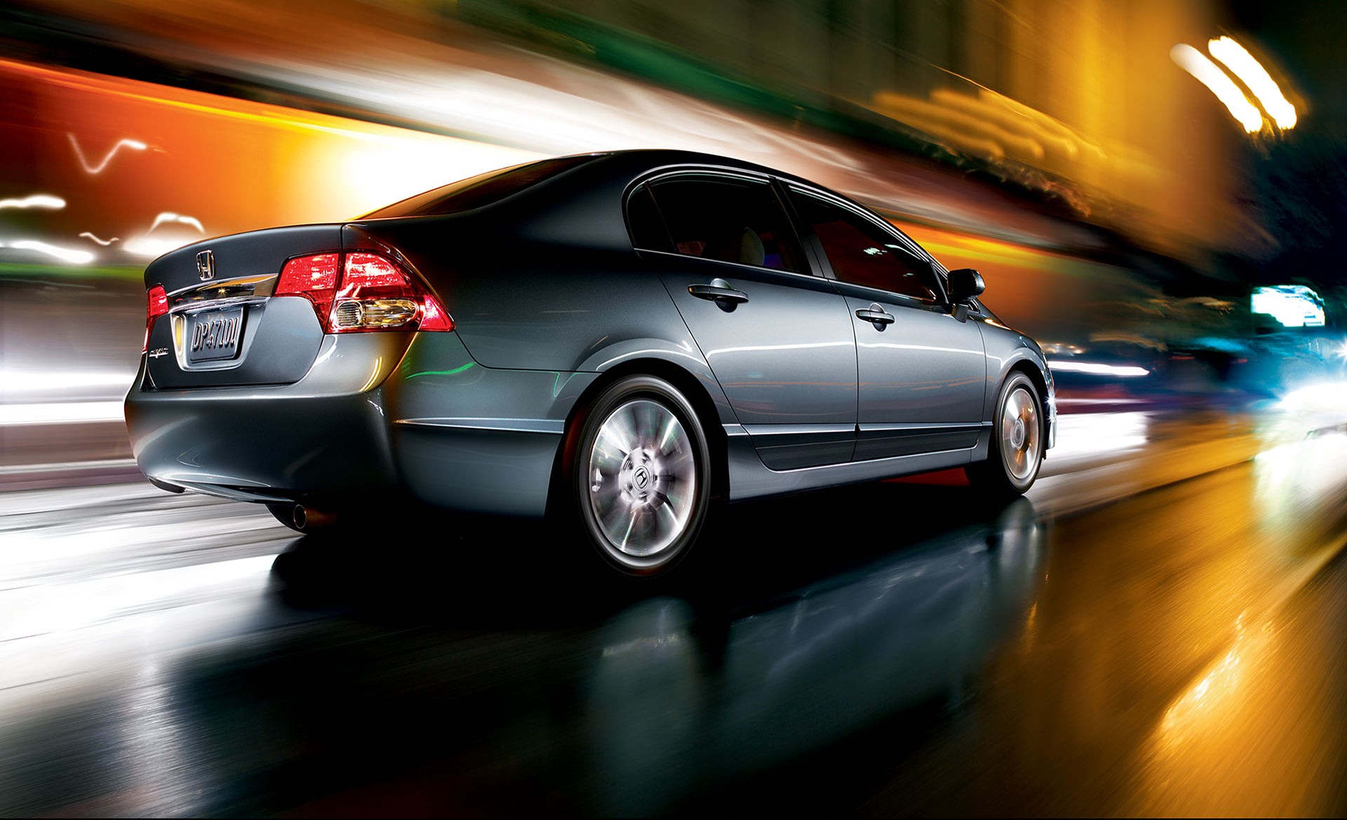 Voiture bleue sur le fond d'un bâtiment de nuit bleu