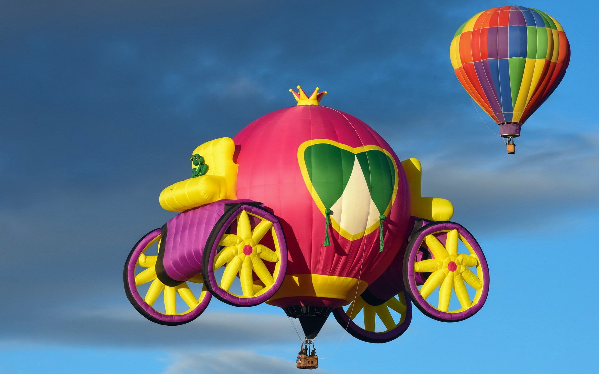 Ballons lumineux et insolites flottent dans le ciel bleu