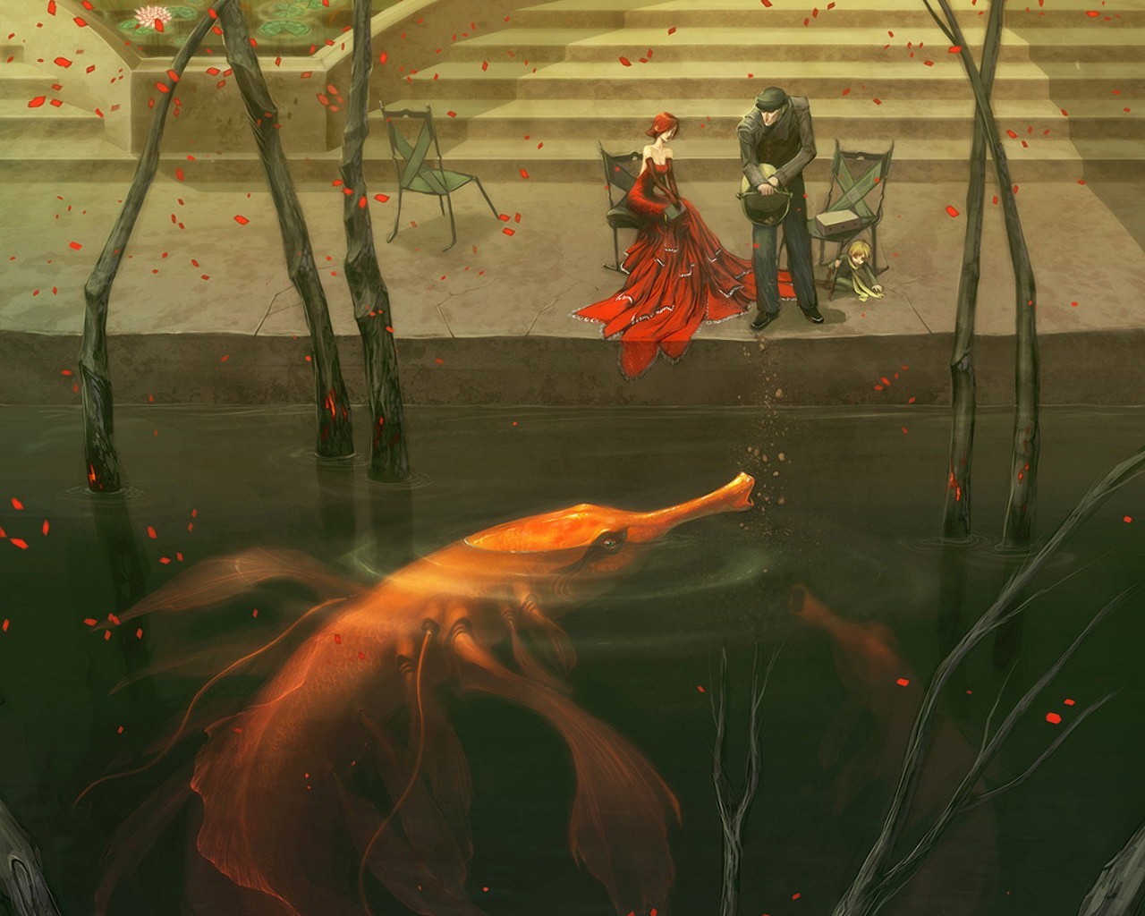 Homme et femme sur la rive du réservoir avec des poissons énormes