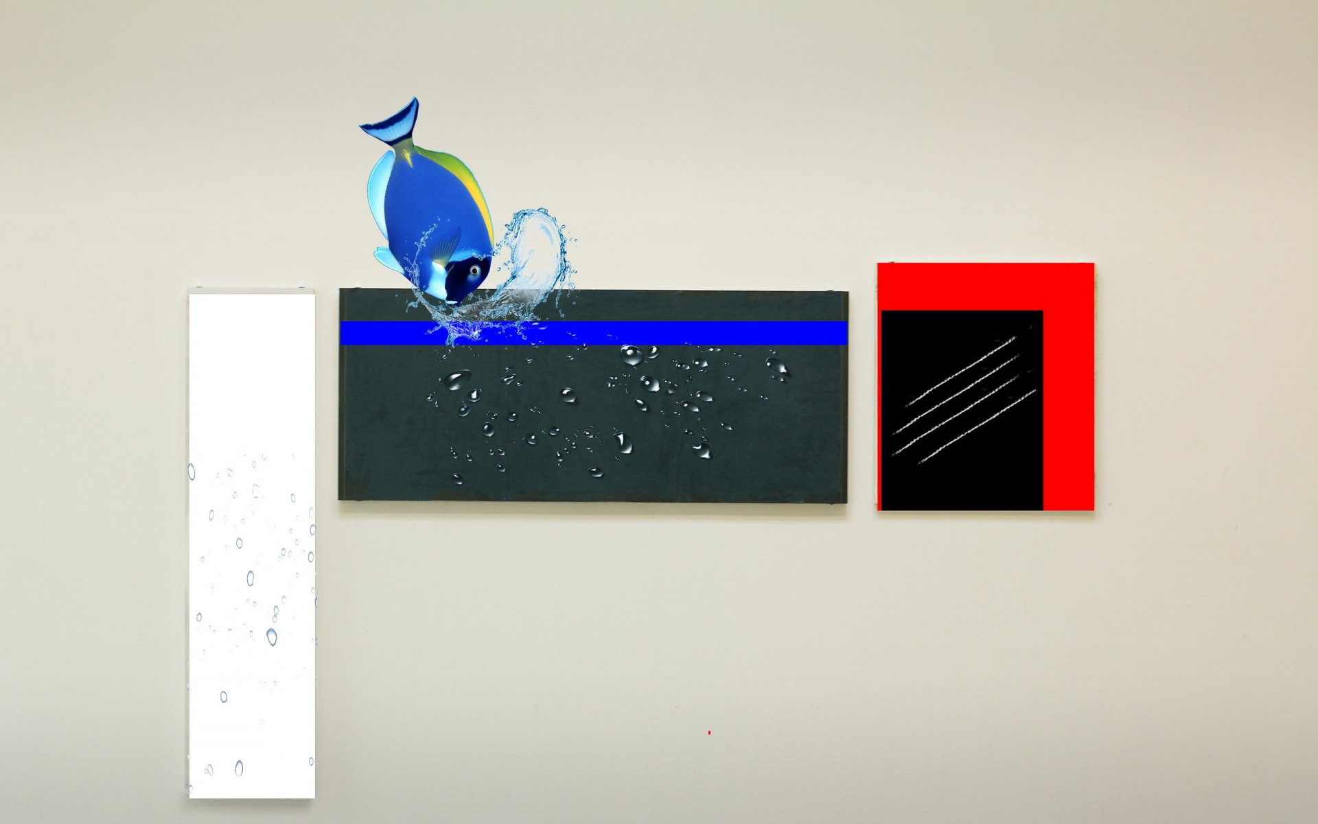 Un gars dessiné avec des cheveux bleus et des poissonsUn gars dessiné avec des cheveux bleus et des poissons