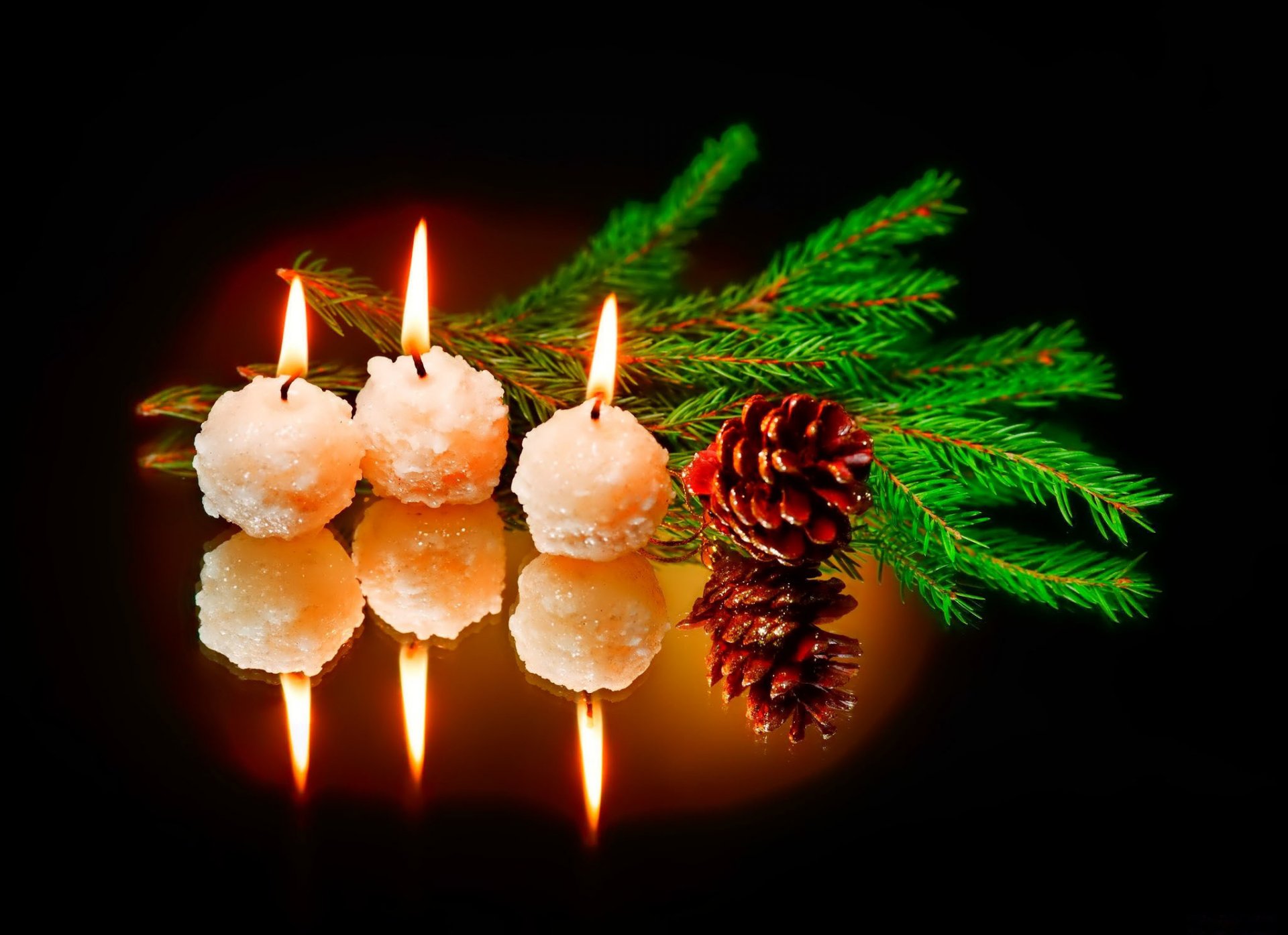 Bougies de noël avec une branche de noël et une pomme de pinBougies de Noël avec une branche de Noël et une pomme de pin