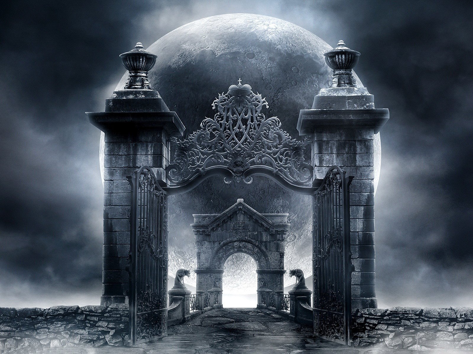 À travers le pont de la forteresse en forme de tête avec l'entrée en forme de boucheÀ travers le pont de la forteresse en forme de tête avec l'entrée en forme de bouche