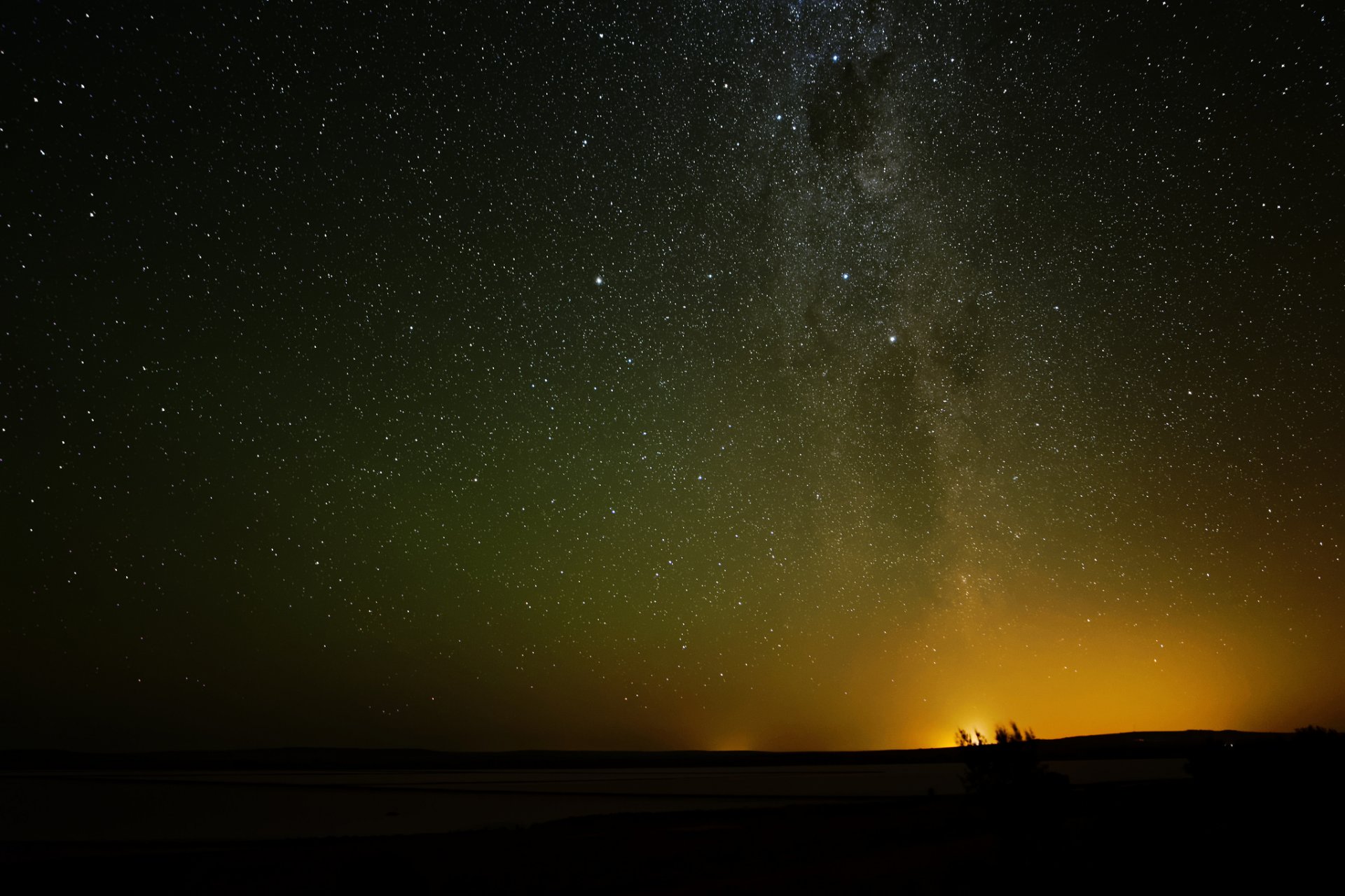Séparation de la terre et le ciel nocturne, la lumière à l'horizon