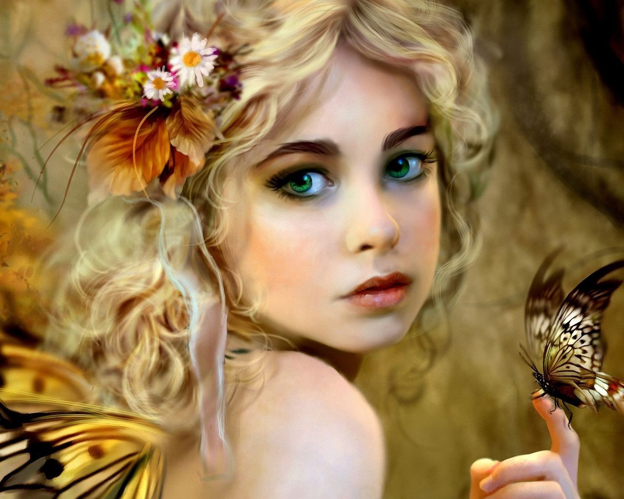 La jeune fille modèle dans l'abstraction, en forme de papillon
