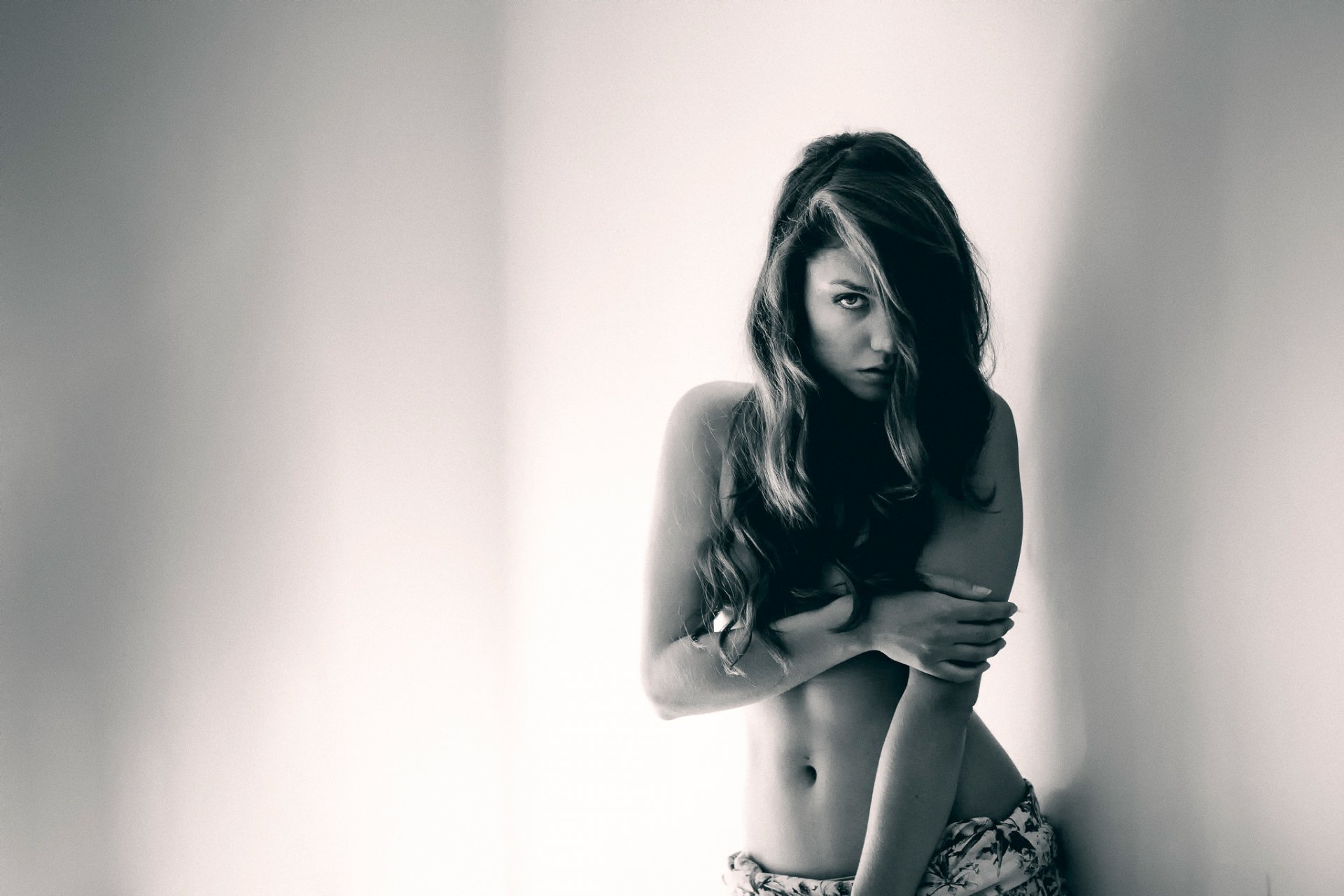 Portrait noir et blanc d'une jeune fille allongée sur le ventrePortrait noir et blanc d'une jeune fille allongée sur le ventre