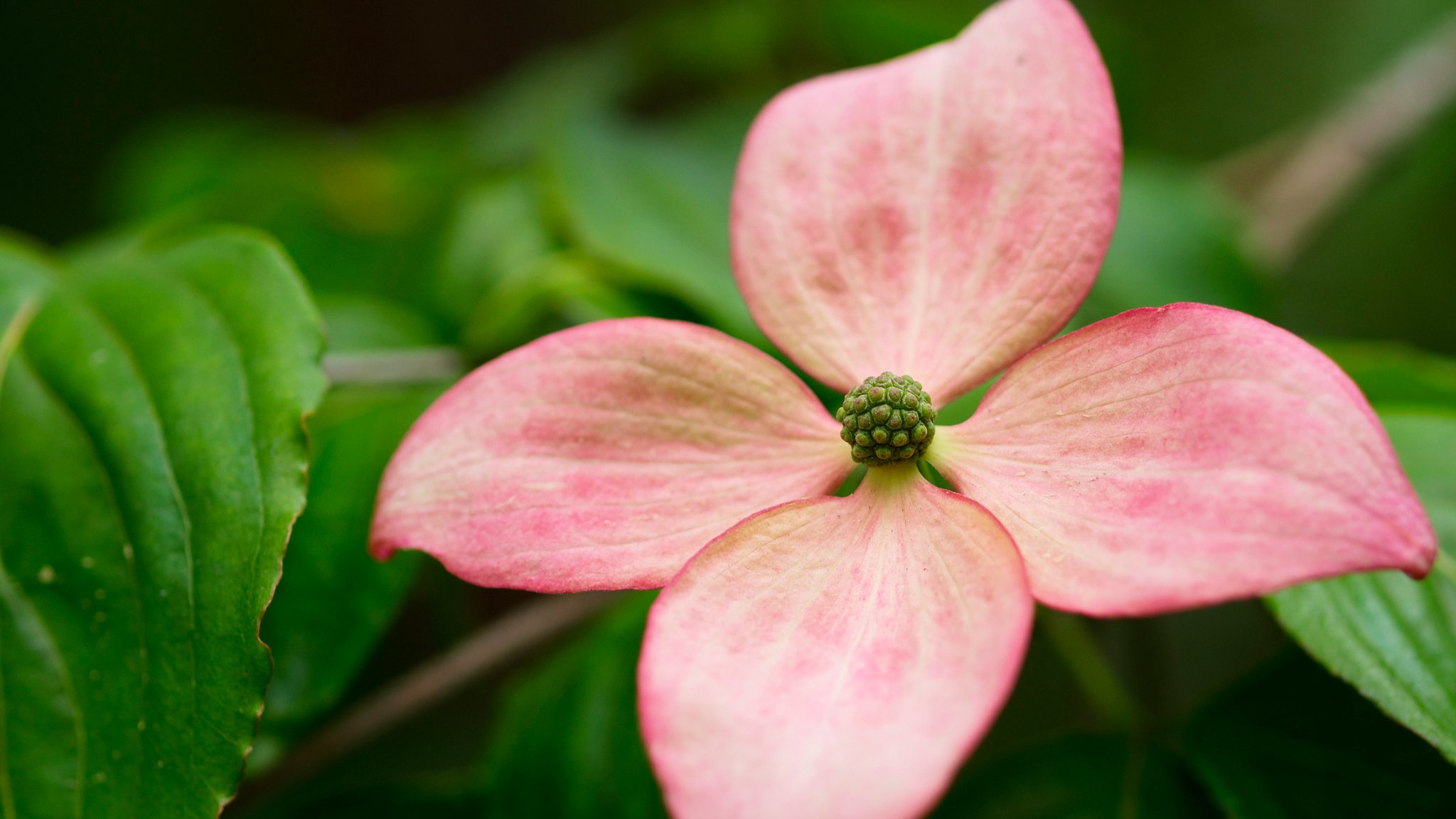 Trois gouttes d'eau sur les feuilles vertes sur fond flou
