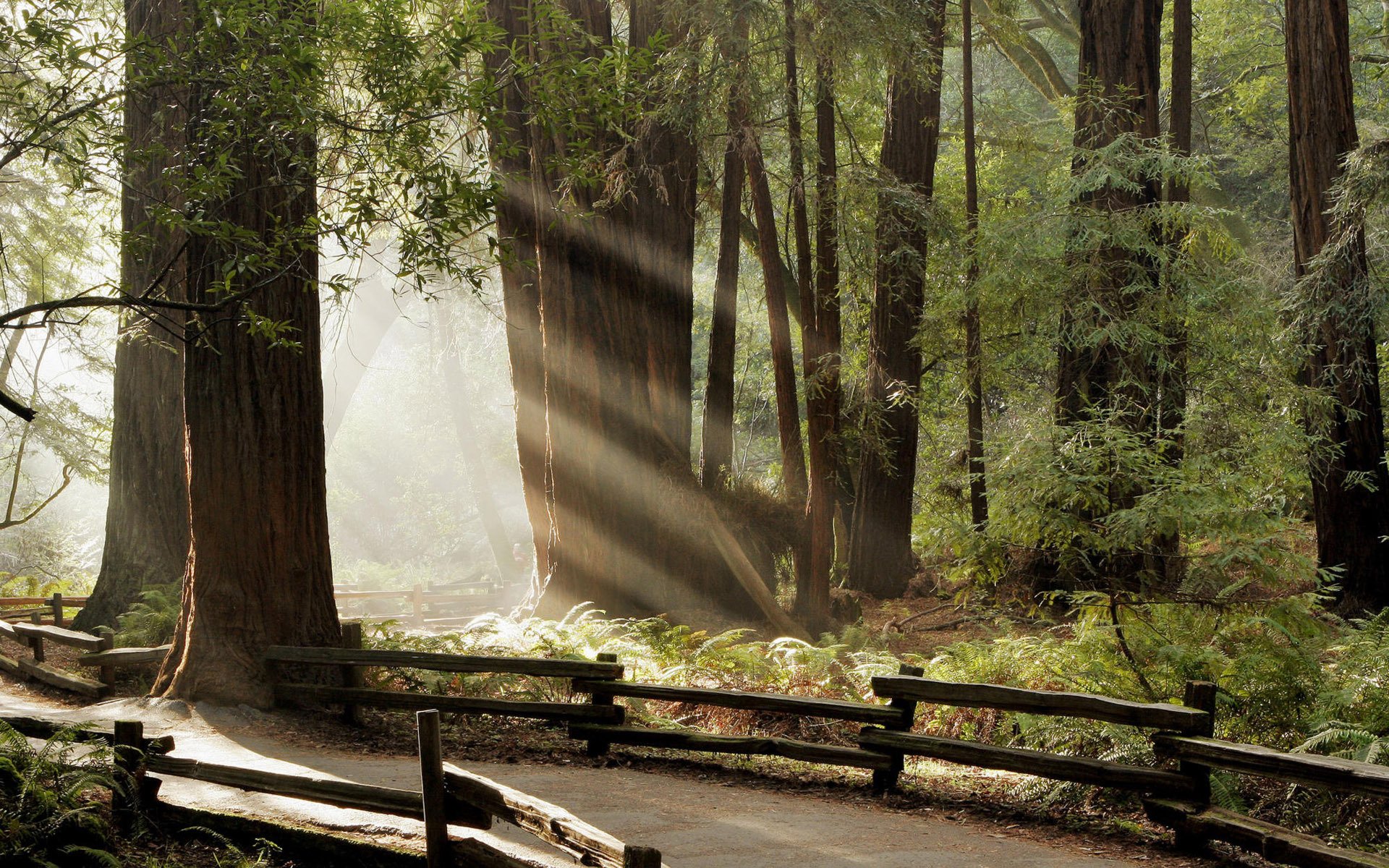 Les rayons du soleil illuminent le sentier forestierLes rayons du soleil illuminent le sentier forestier