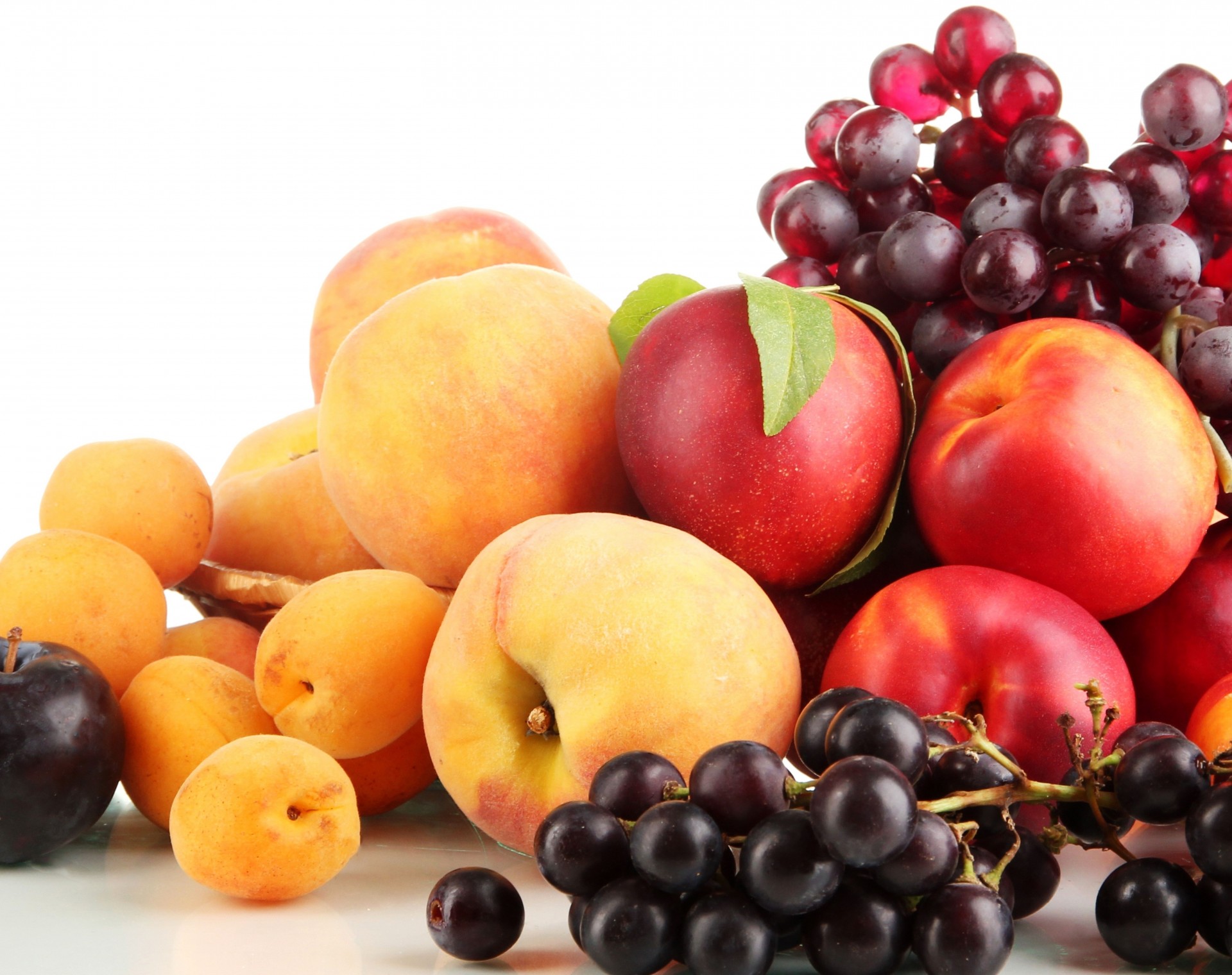 Photo de fruits raisin, fraise, citron, poire et pomme