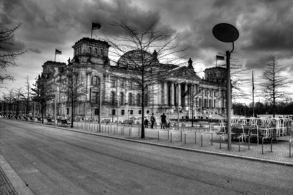 Nuages sur le reichstag, photo noir et blanc