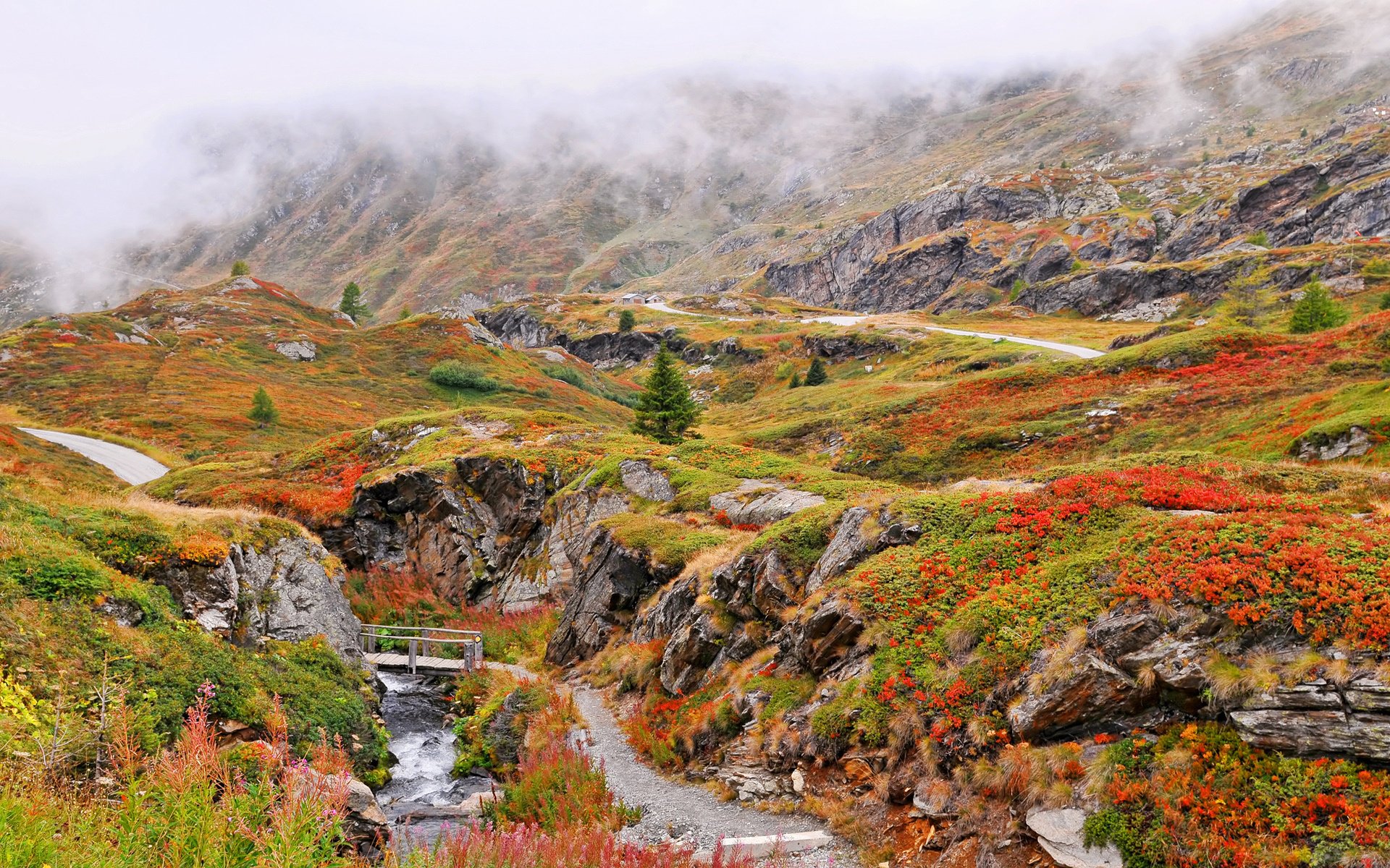 Rivière de montagne et les rayons du soleil dans la forêt sauvageRivière de montagne et les rayons du soleil dans la forêt sauvage