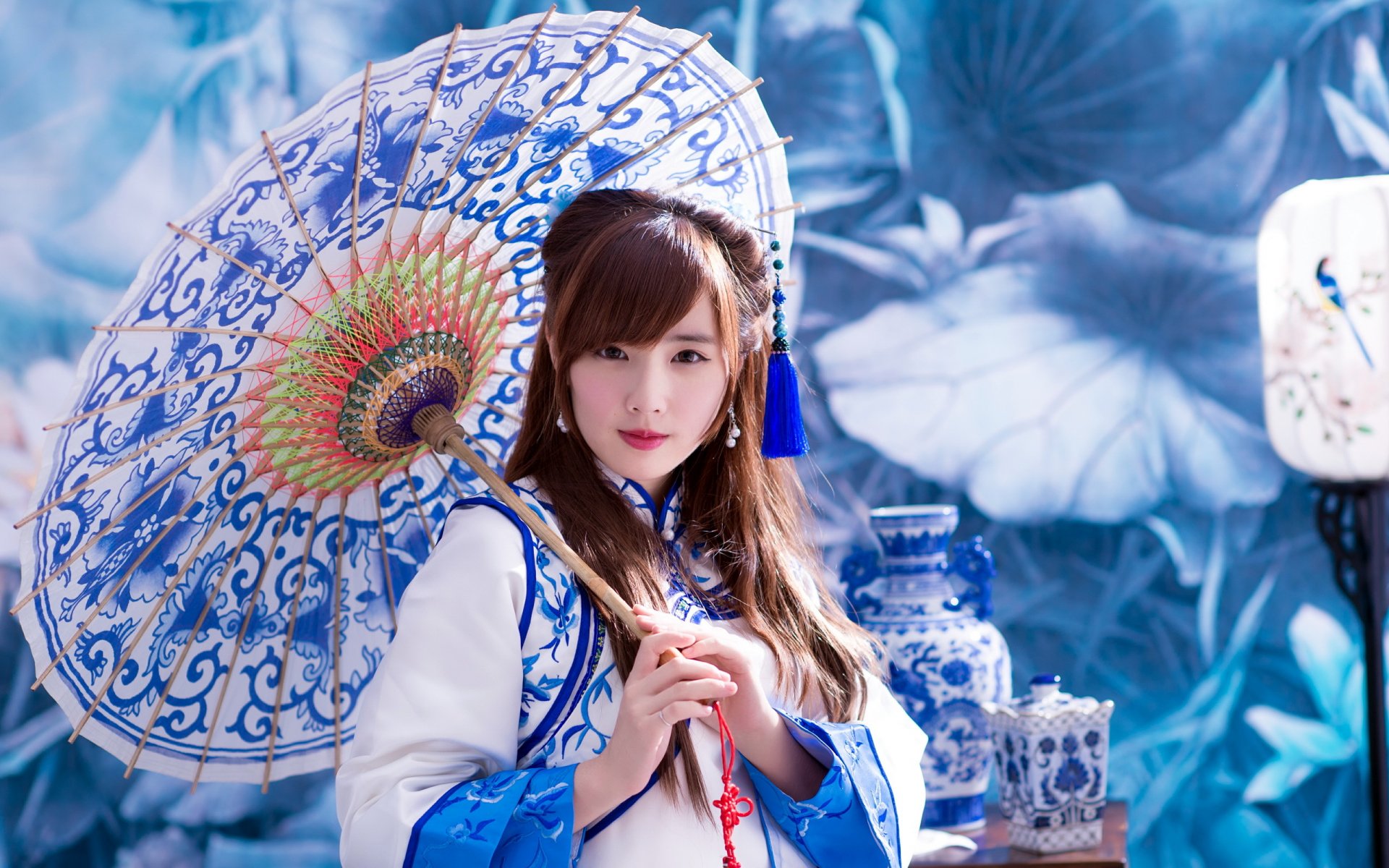 Fille asiatique avec un parapluie et un joli visageFille asiatique avec un parapluie et un joli visage