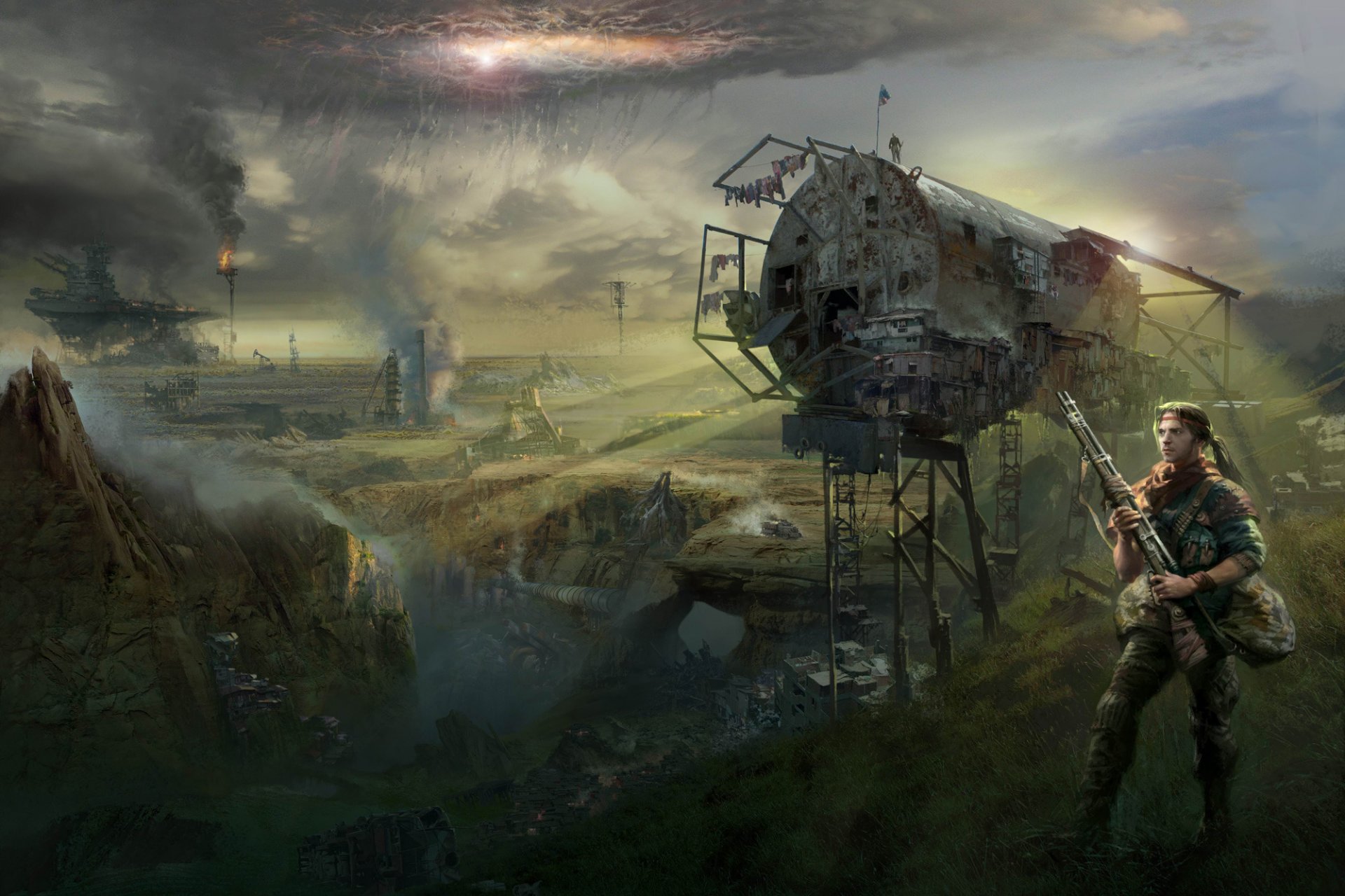 Militaire avec fusil sur fond de post-Apocalypse