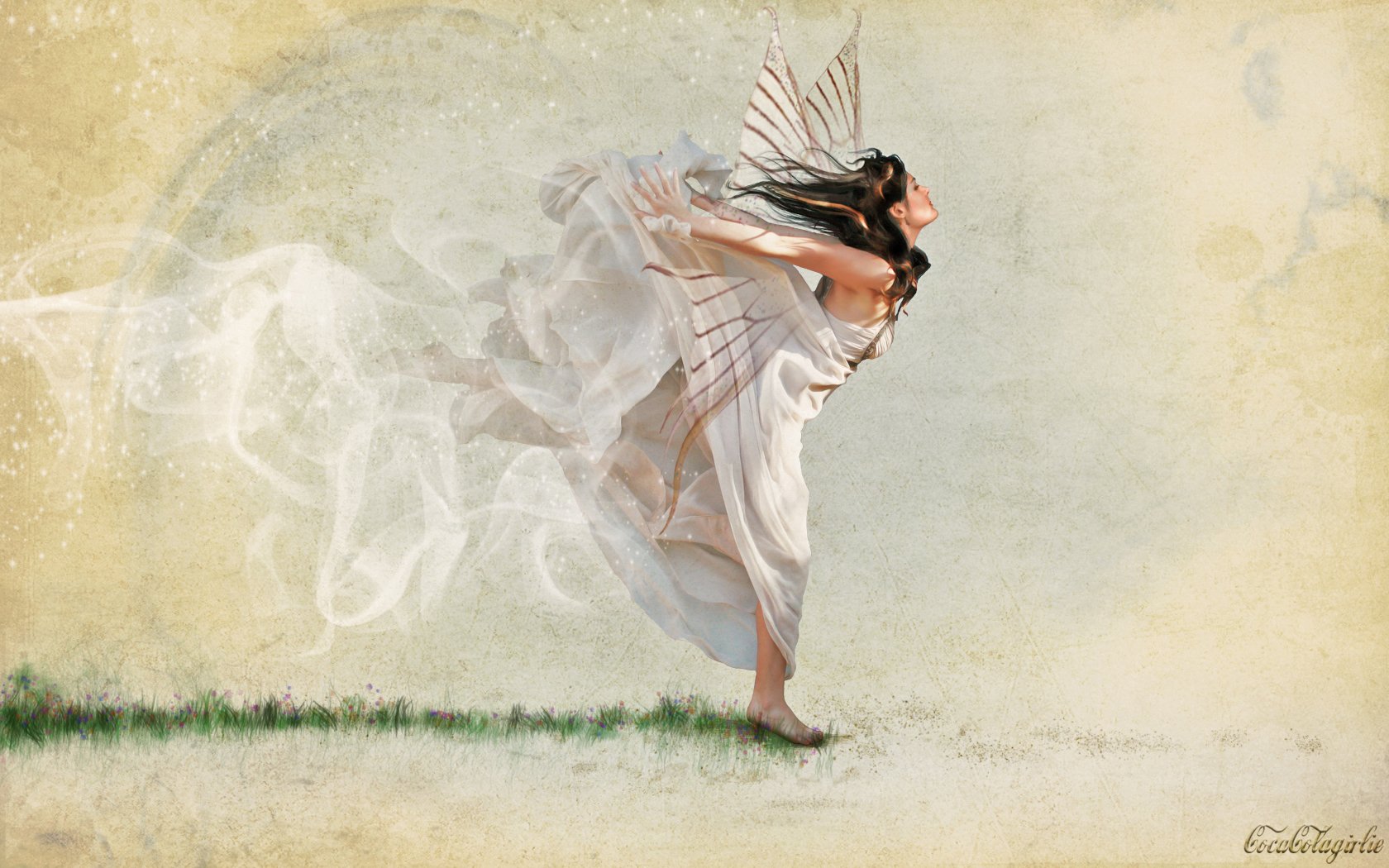 Battre les ailes d'une jeune fille en robe blancheBattre les ailes d'une jeune fille en robe blanche