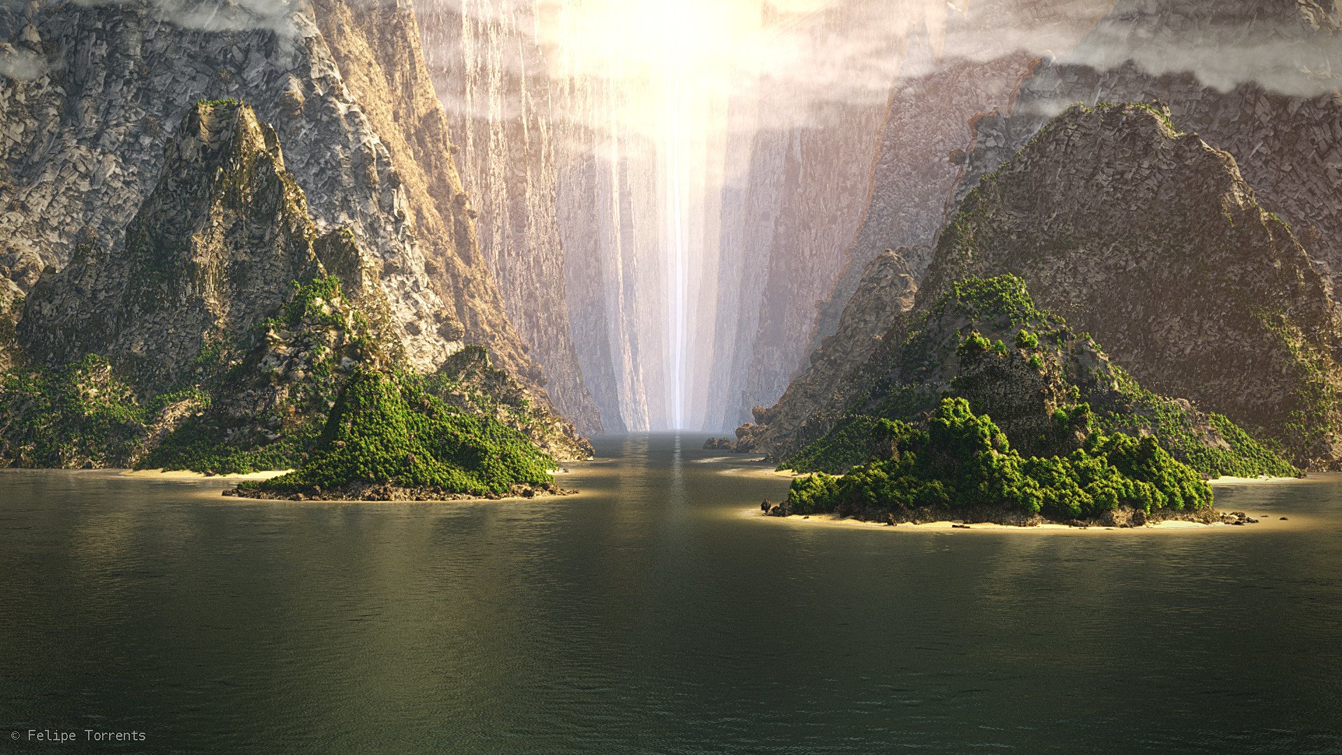 Paysage avec baie de mer et rochers