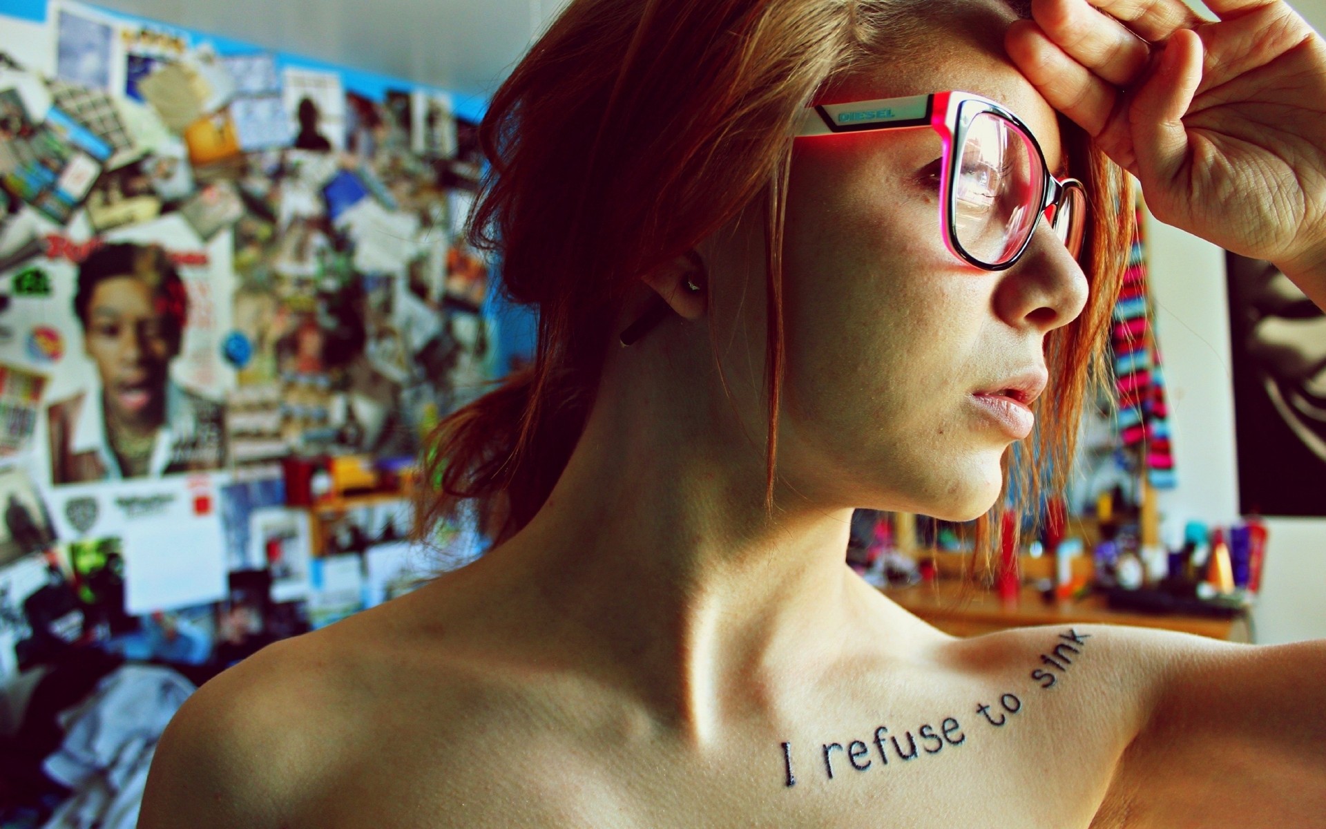 Fille rousse, maquillage lumineux, les corbeaux, forêt