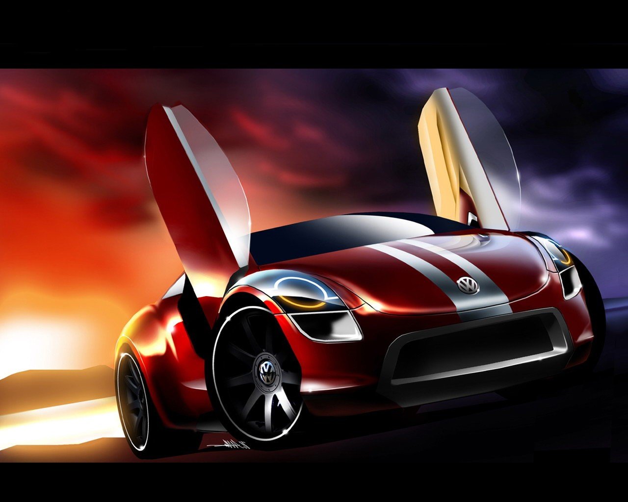 Voiture de sport sur fond de coucher de soleil rougeVoiture de sport sur fond de coucher de soleil rouge
