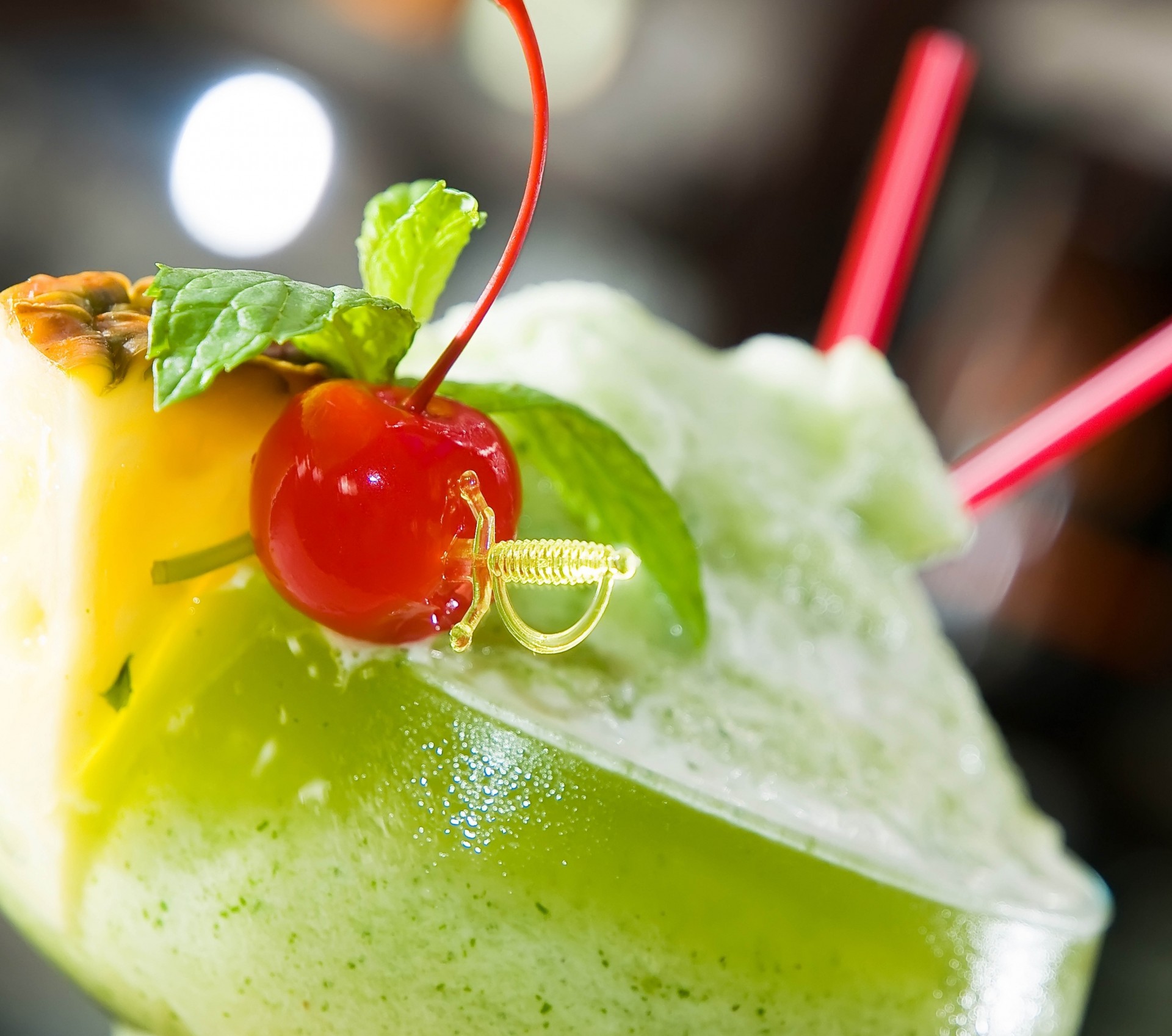 Cocktail vert avec cerise et pailles
