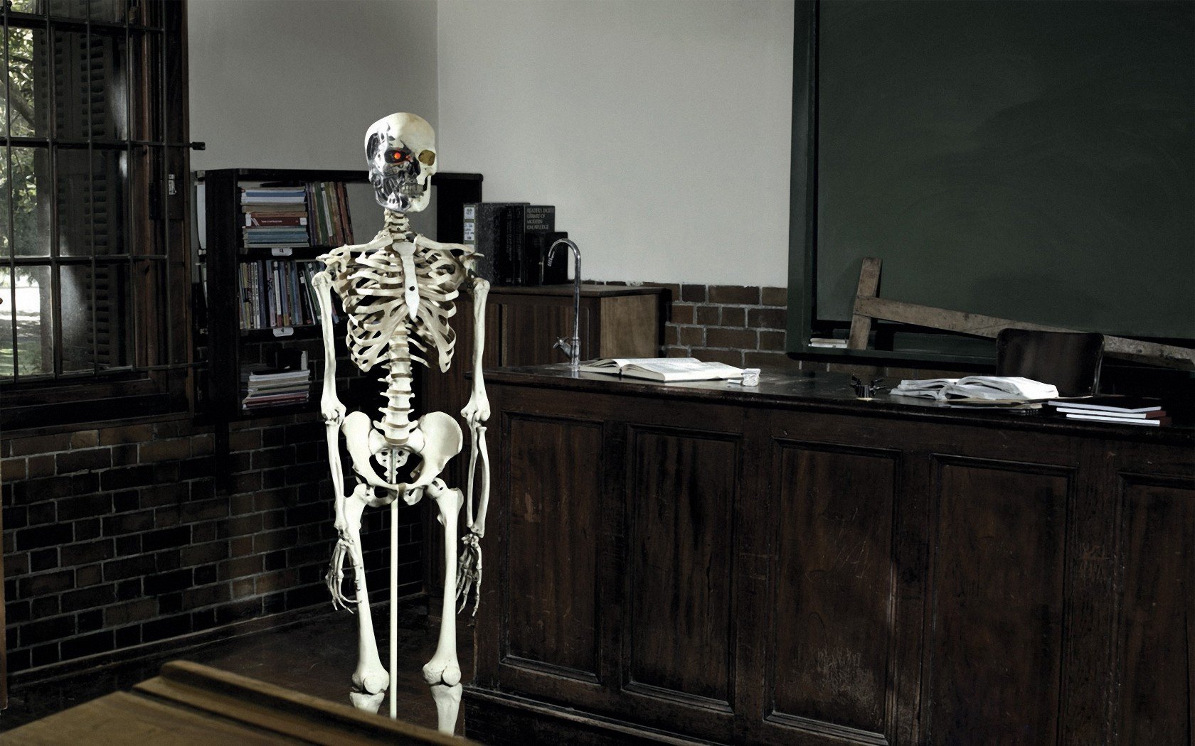 Le squelette de terminator dans la salle de classeLe squelette de terminator dans la salle de classe