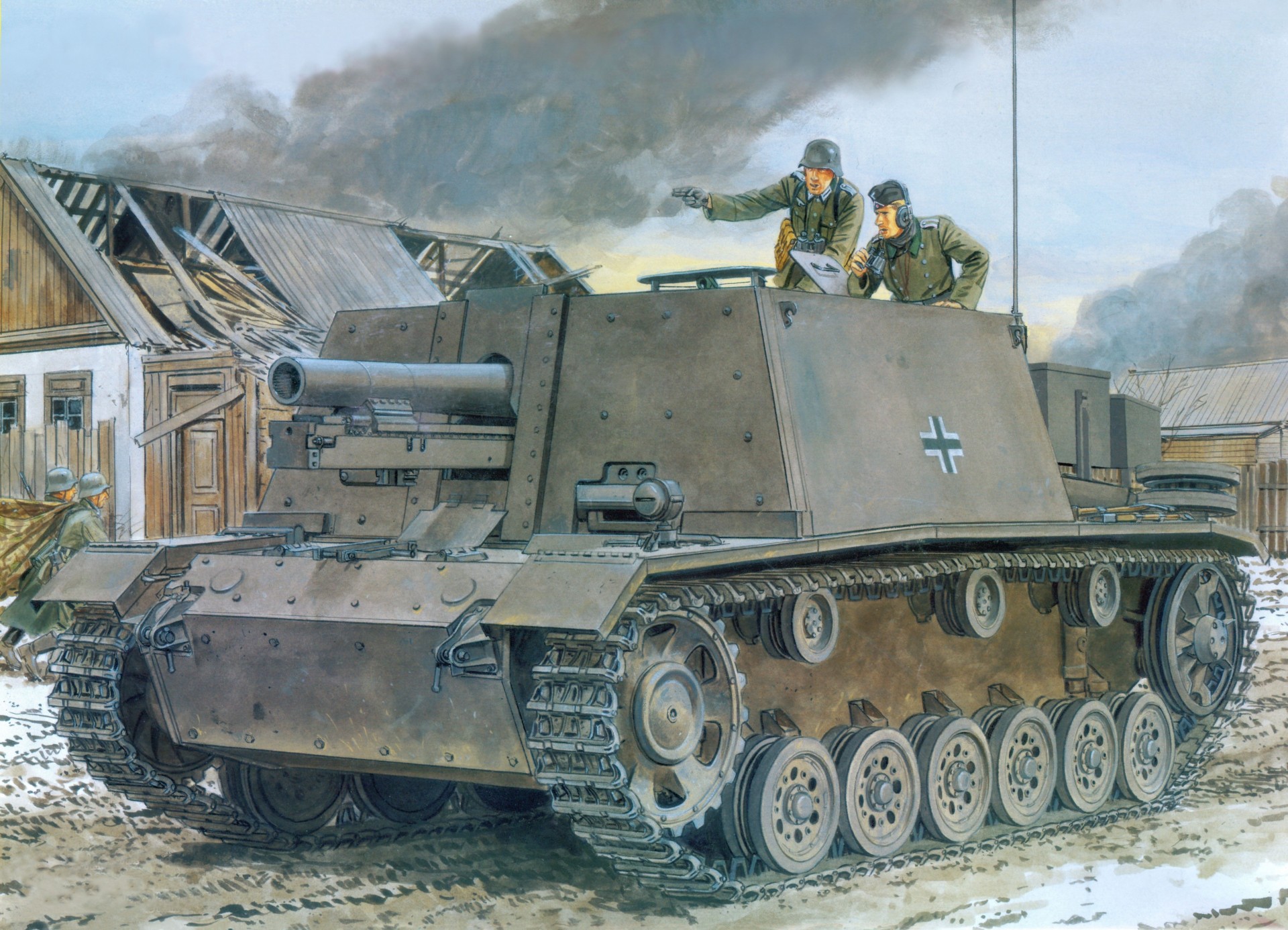 L'unité de reconnaissance suit le canon automoteurL'unité de reconnaissance suit le Canon automoteur
