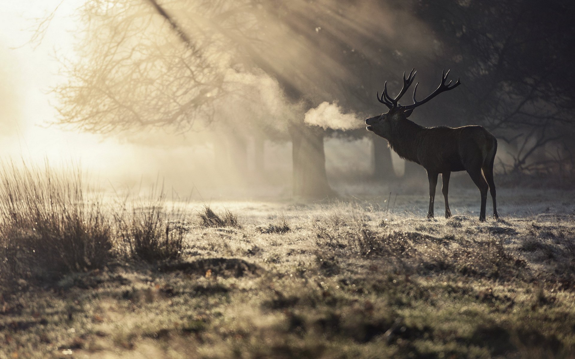 Brouillard dans la forêt du matin. pissenlit fleuriBrouillard dans la forêt du matin. Pissenlit fleuri