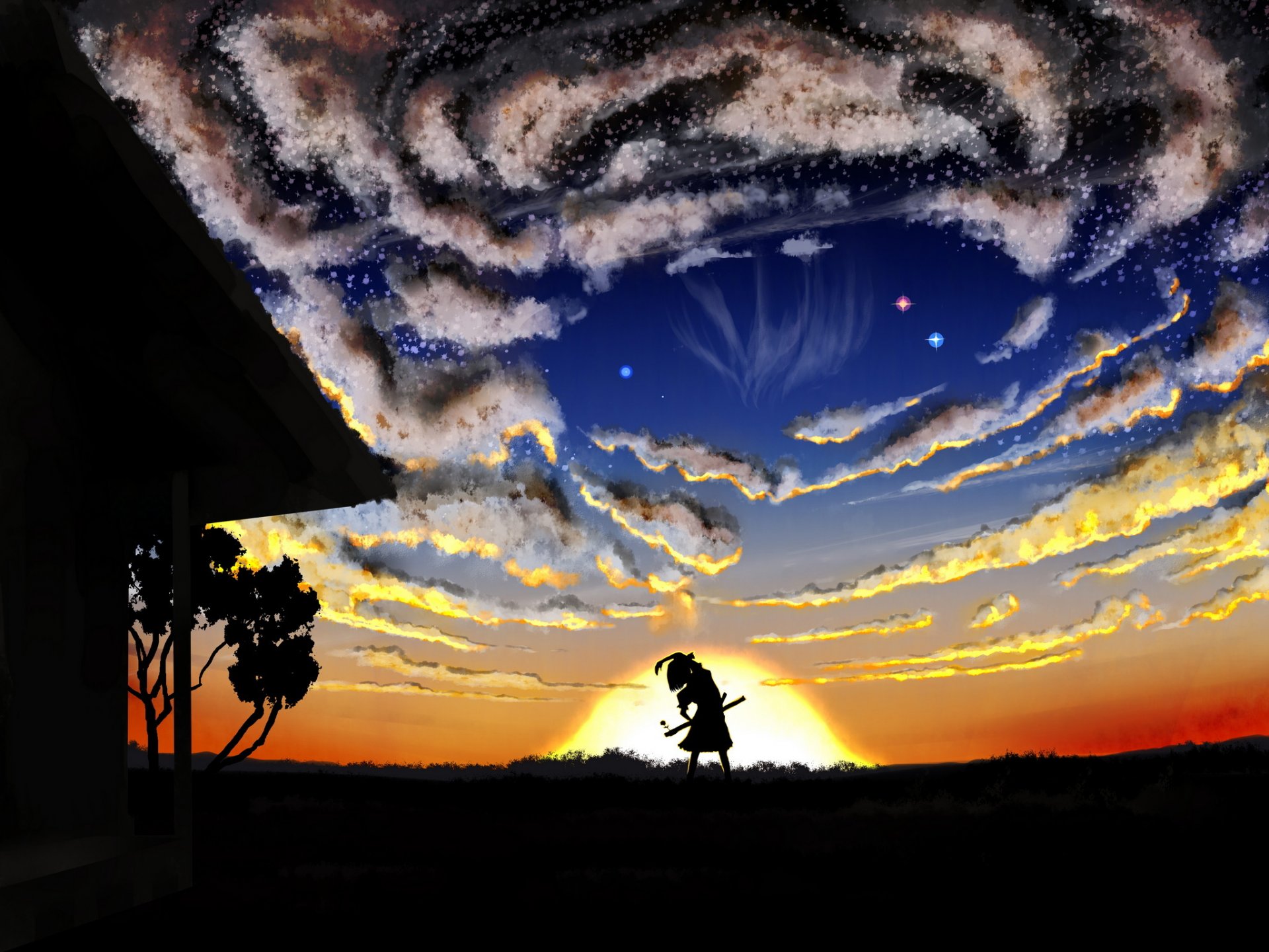 Champ avec des fleurs sur fond de coucher de soleilChamp avec des fleurs sur fond de coucher de soleil