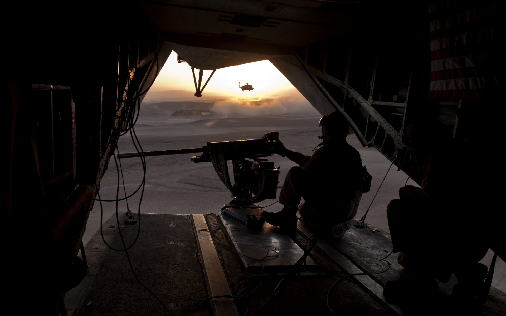 Soldat au poste avec des armes sur fond de ciel nocturne