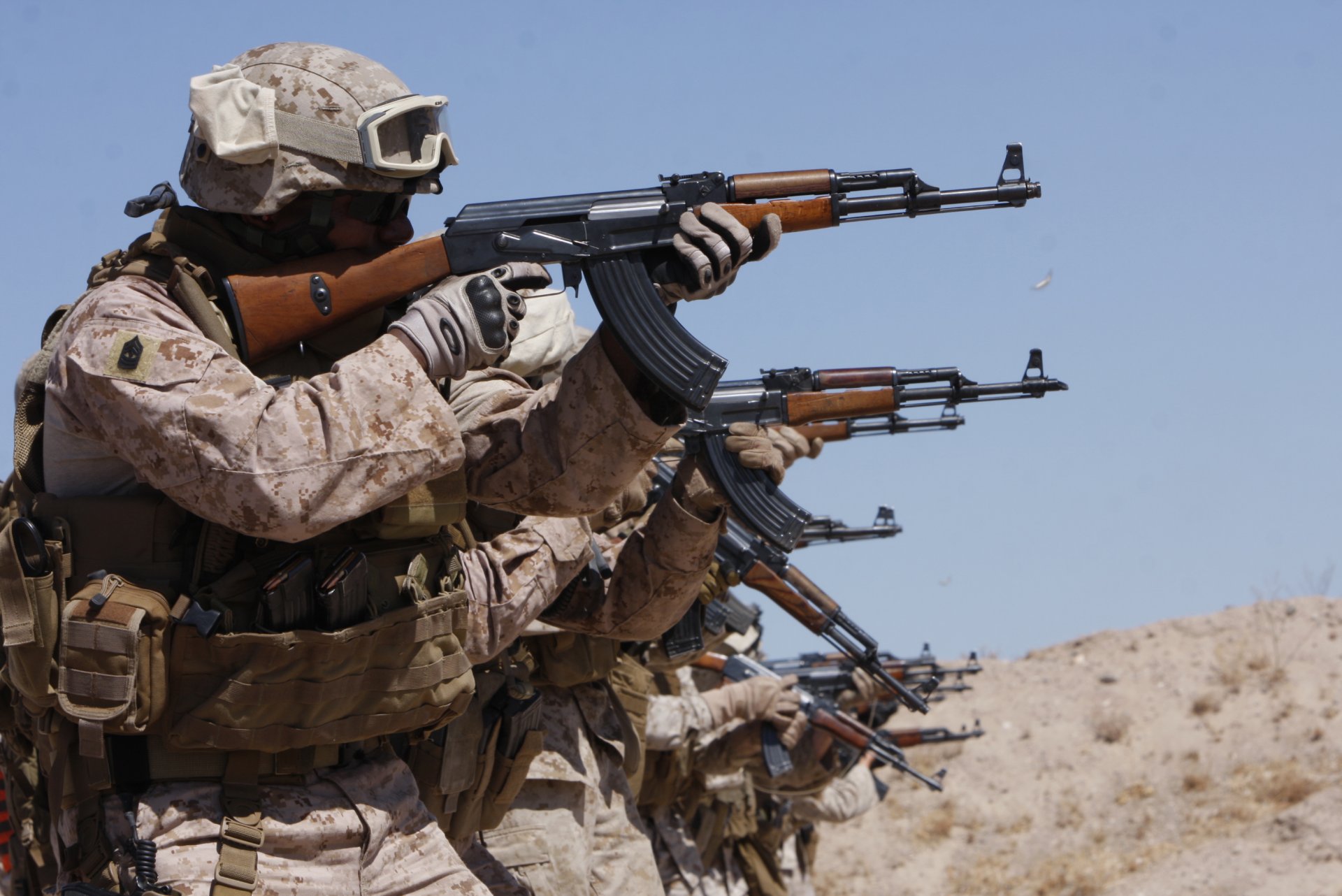 Des soldats armés se cachent derrière une barricadeDes soldats armés se cachent derrière une barricade