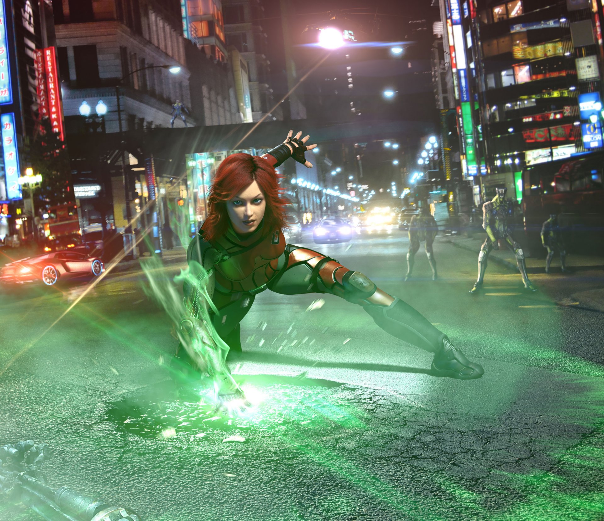 Super-héros blessé sur fond de ville