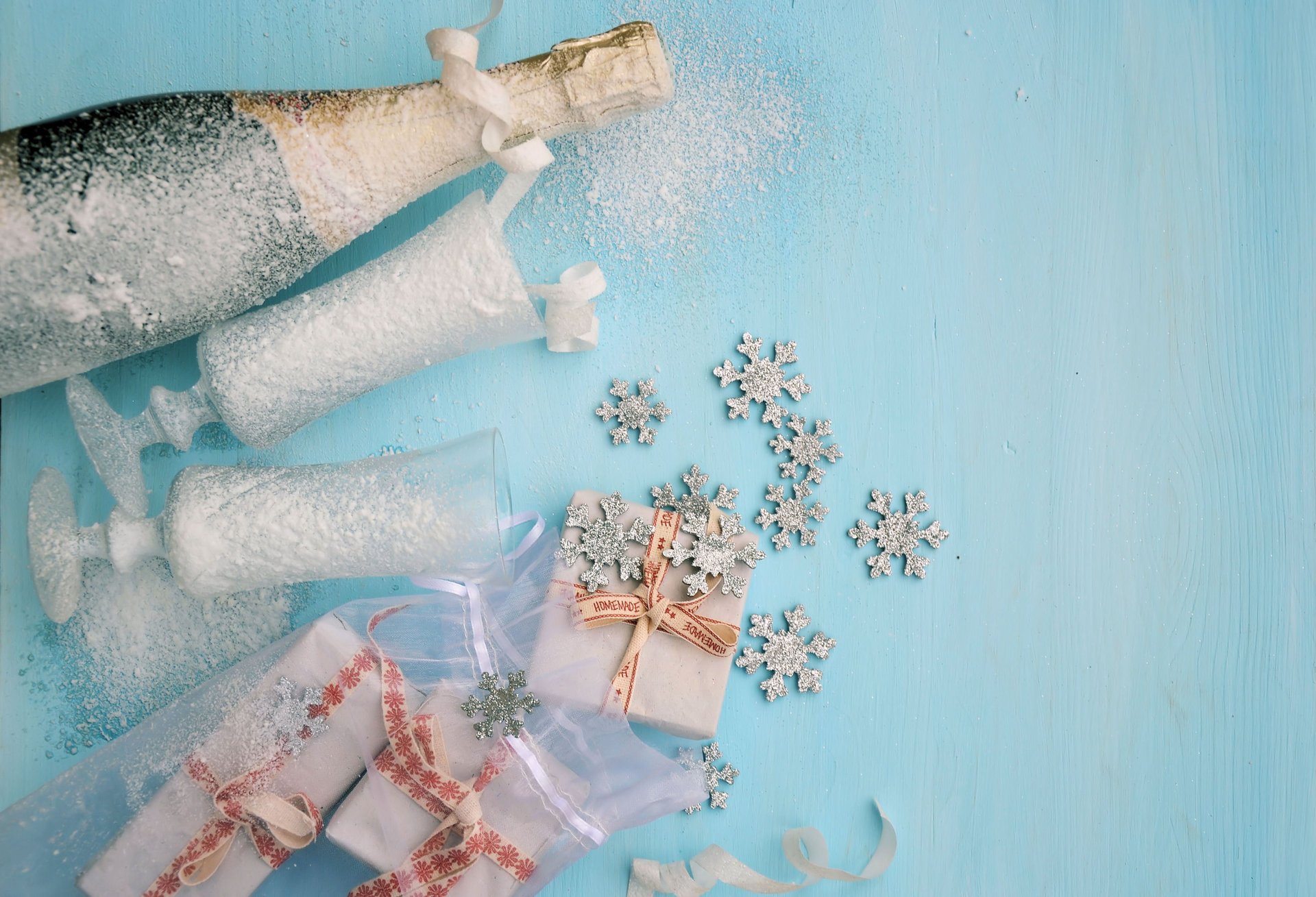 Fond d'écran de Noël avec bouteille et verres