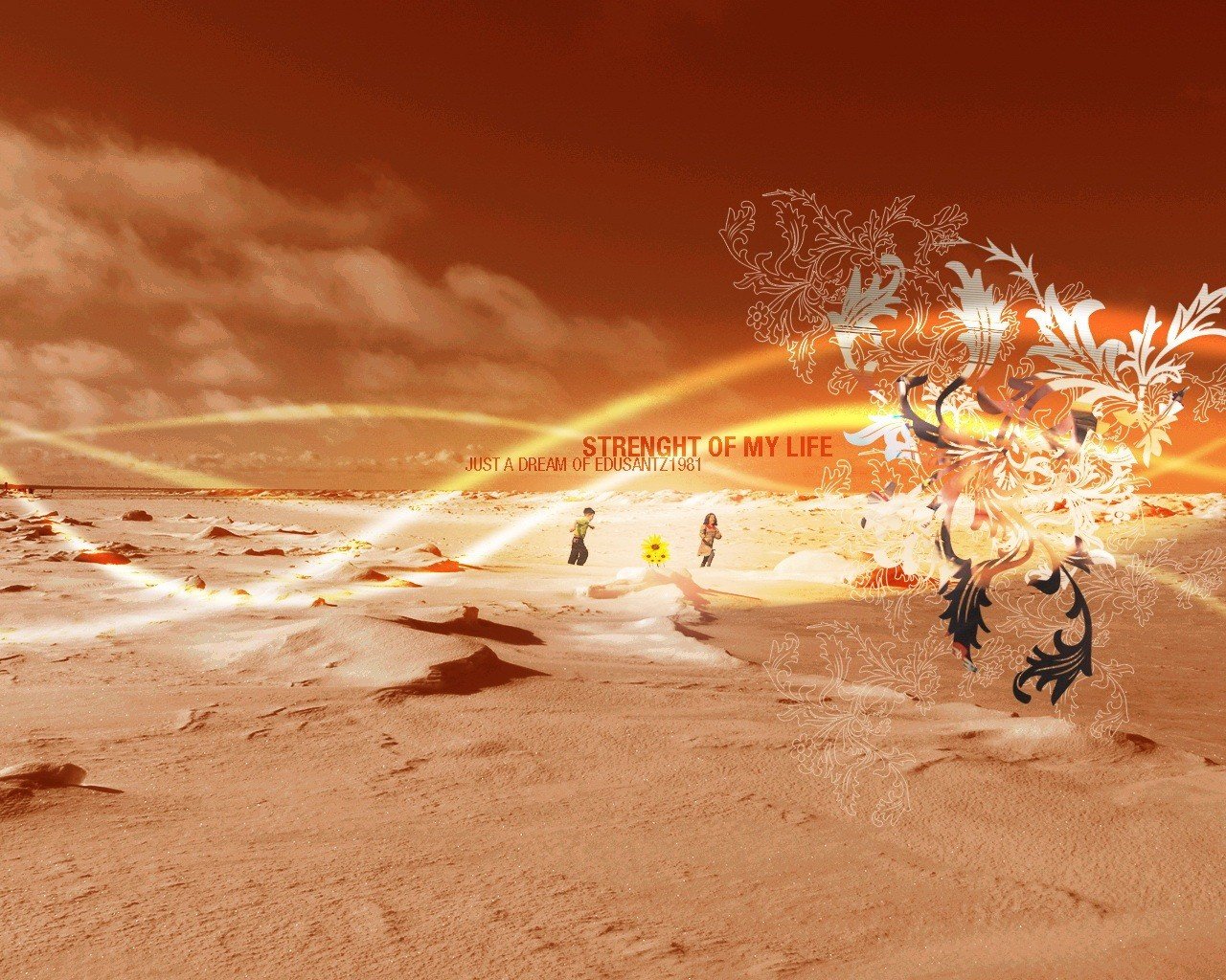 Fille et garçon dans le désert au coucher du soleilFille et garçon dans le désert au coucher du soleil