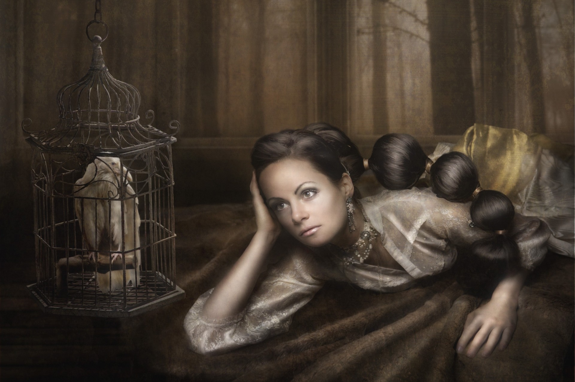 Henry cavill, acteur de la série télévisée tudor et deux dames en corsetsHenry Cavill, acteur de la série télévisée Tudor et deux dames en corsets