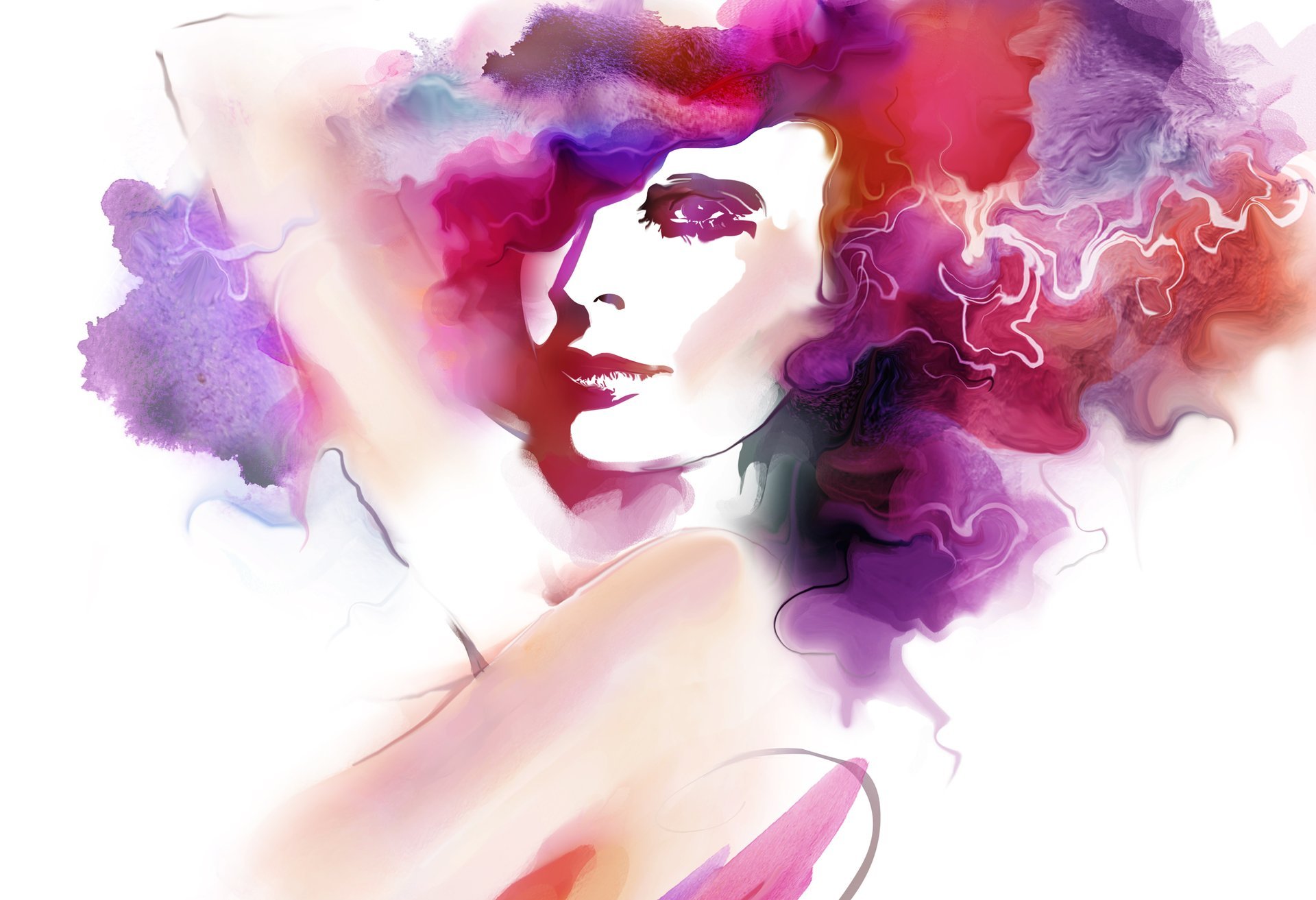 Dessin d'une fille avec des cheveux sous la forme de divorces aquarelleDessin d'une fille avec des cheveux sous la forme de divorces aquarelle
