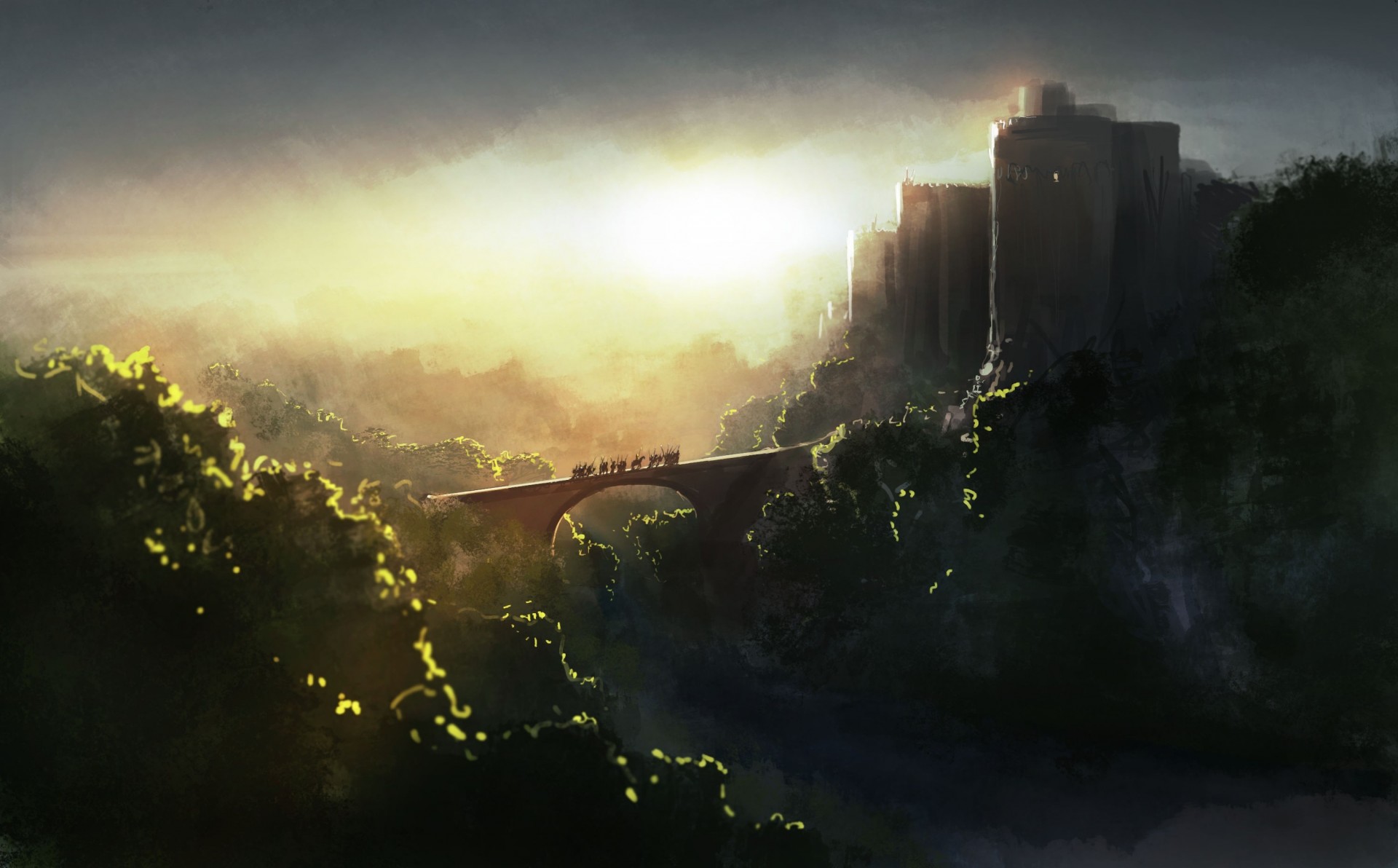 Beau pont inhabituel, pont fantastique beau, aube et pont inhabituel, paysage fantastique et baie