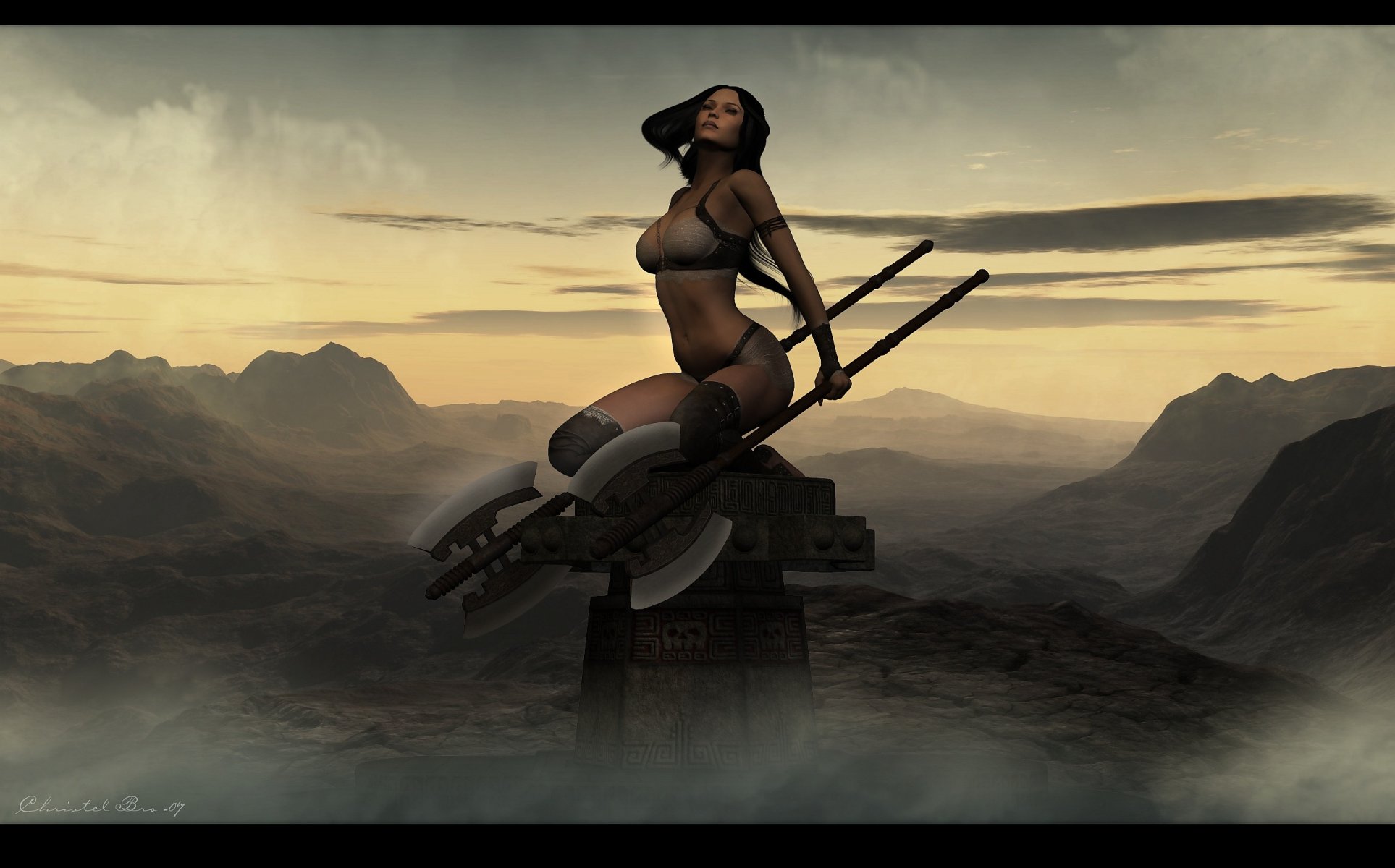 La fille avec секирами dans le style de l'anime