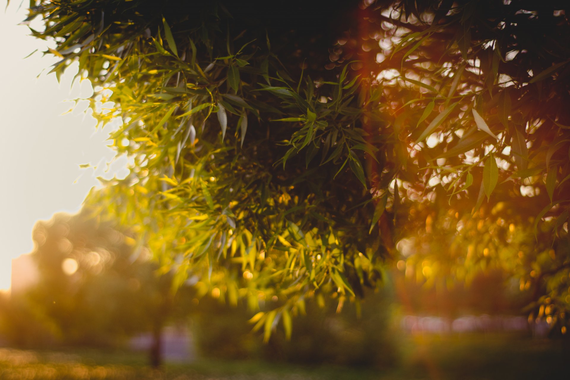 Branches vertes d'un arbre au soleil
