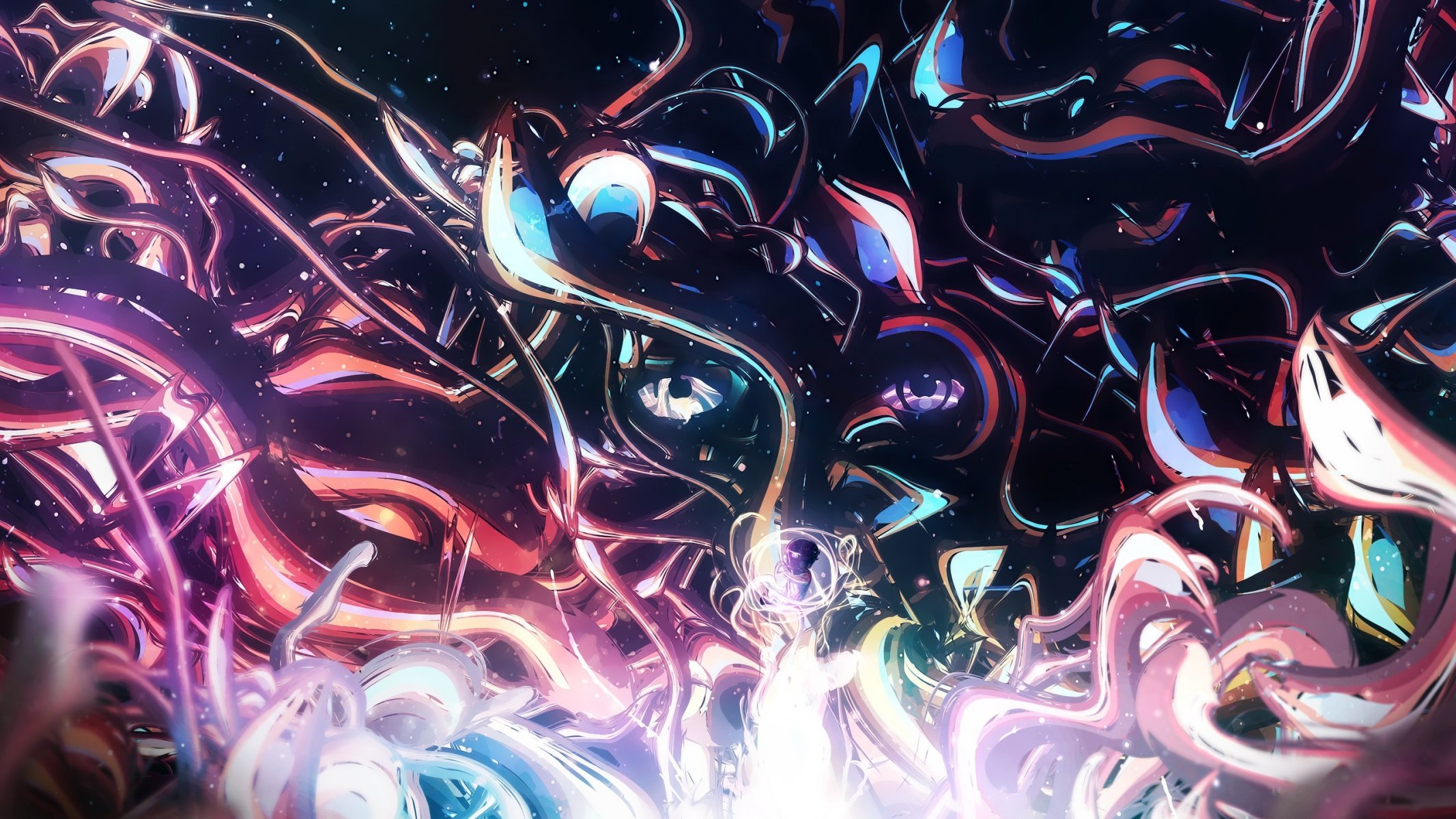 Fille de danse avec des lignes de néon et des éclaboussures