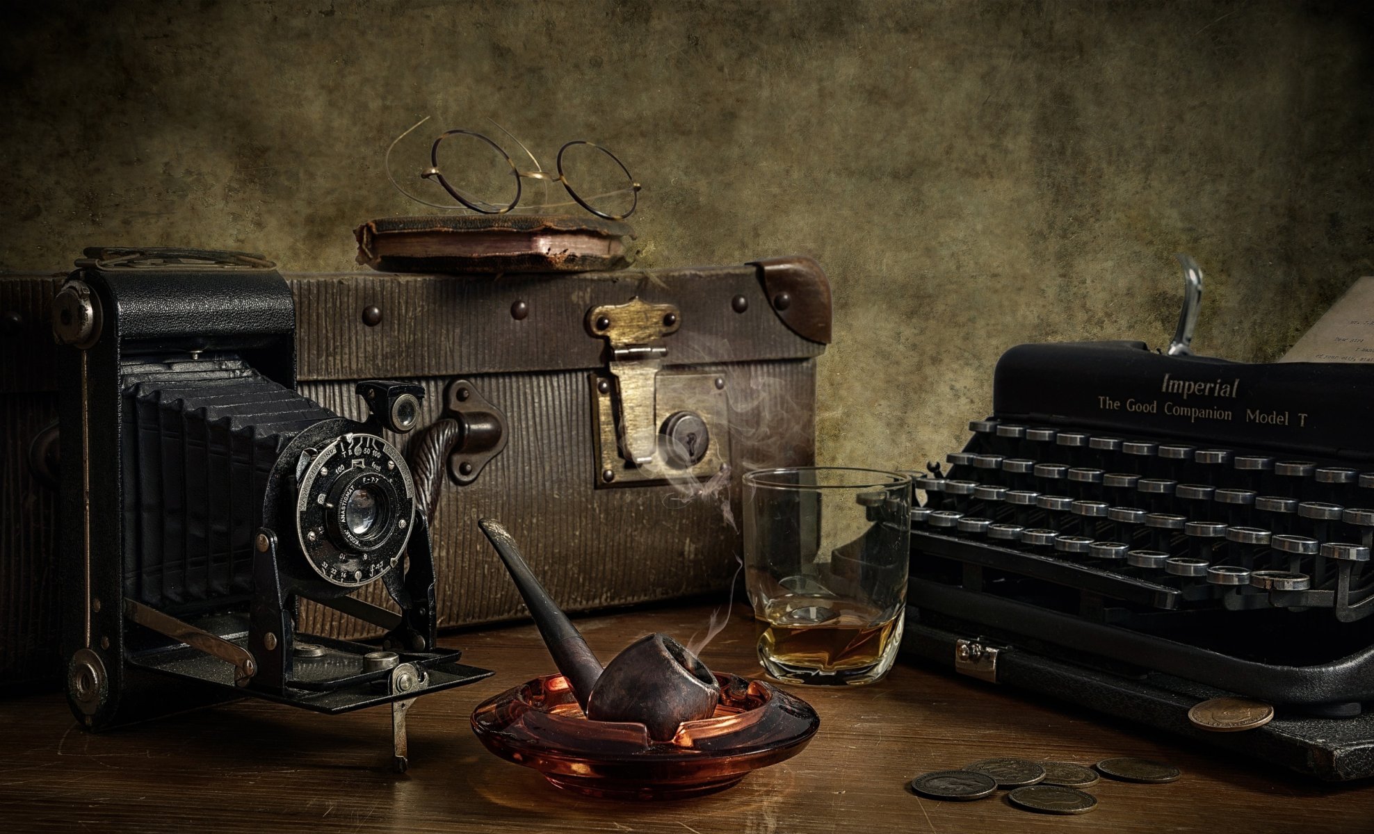 Nature morte avec l'image des choses d'un homme. vieux livre, lunettes, tube, bouteilleNature morte avec l'image des choses d'un homme. Vieux livre, lunettes, tube, bouteille