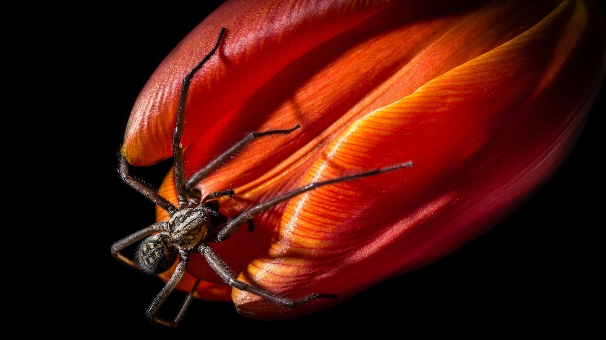 Araignée assise sur une tulipe rouge