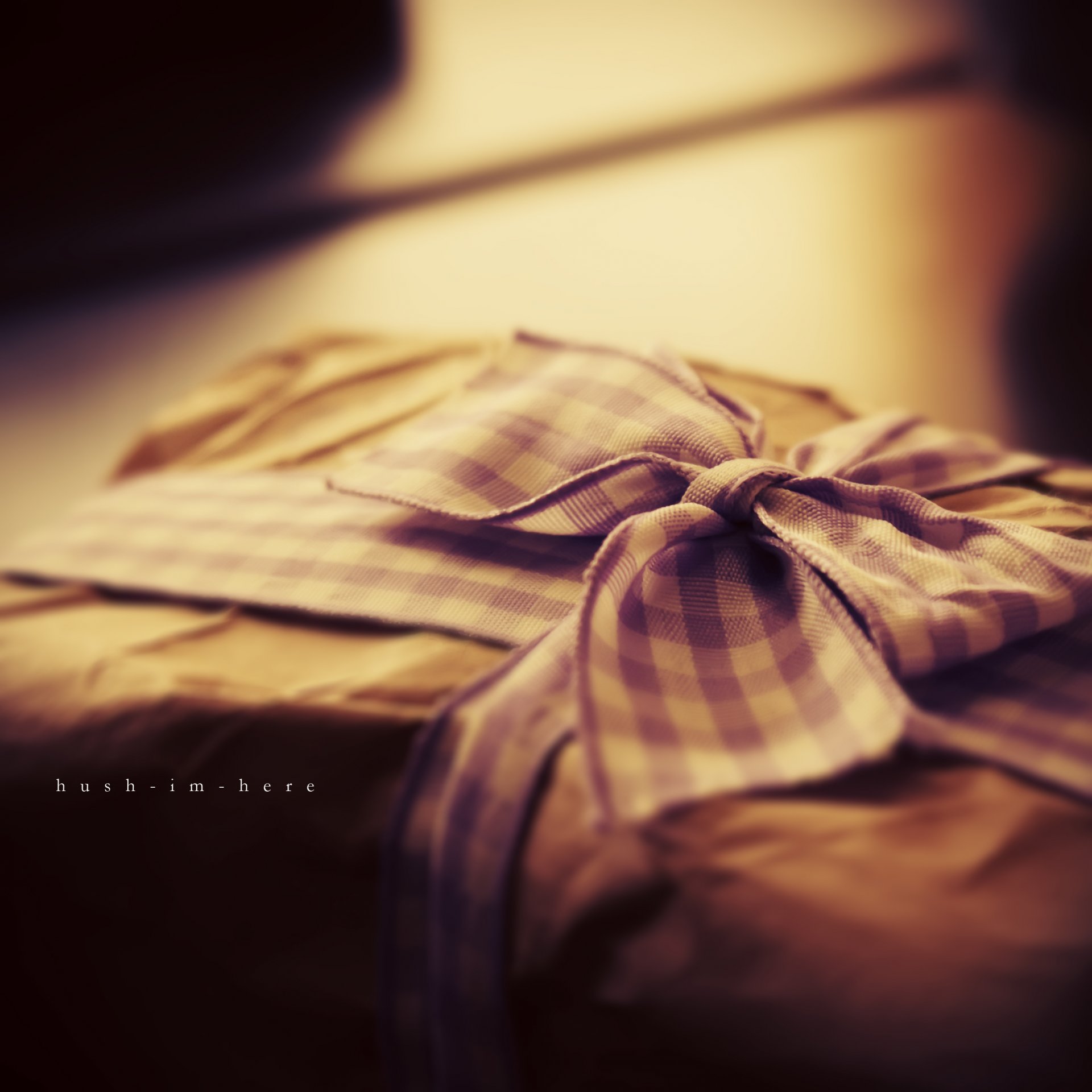 Fille avec des boucles et des arcs avec un cadeau de Noël