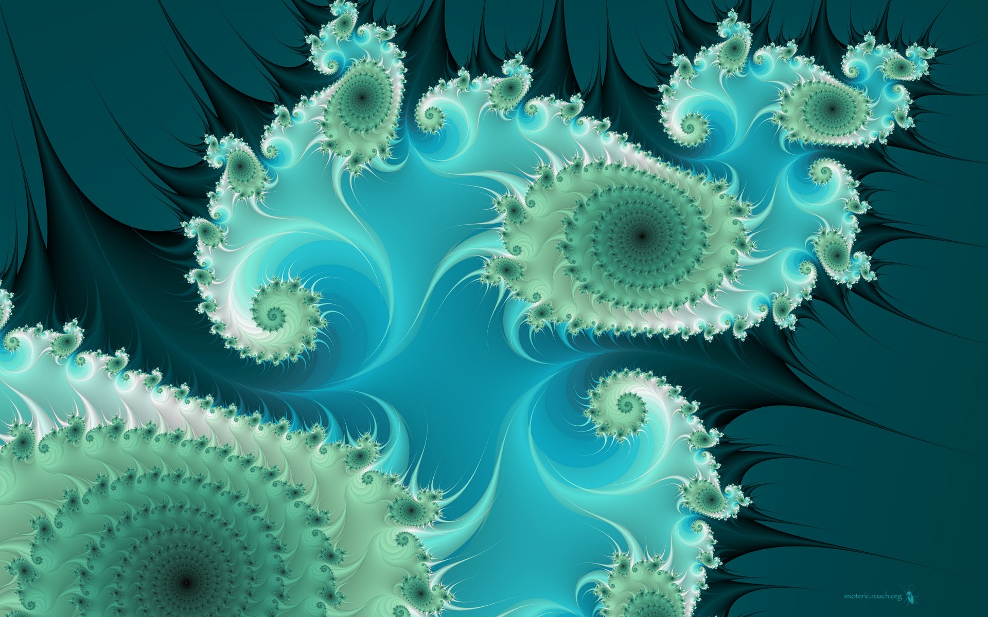 Boucles vertes dans le courant bleu sur fond vert foncéBoucles vertes dans le courant bleu sur fond vert foncé