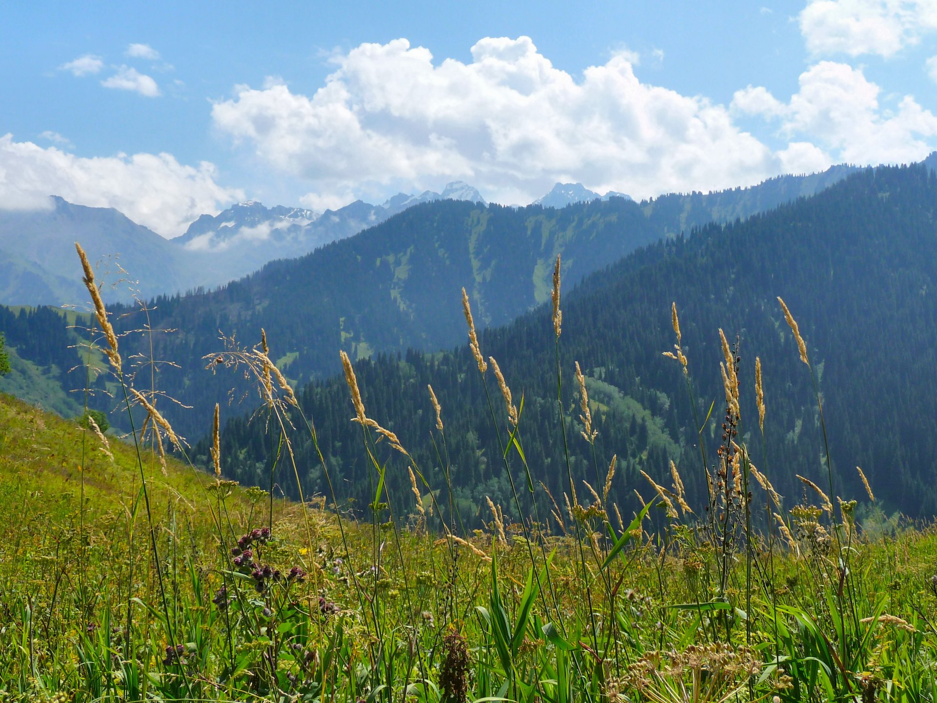 Coccinelle sur une fleur sur un fond de ciel bleu