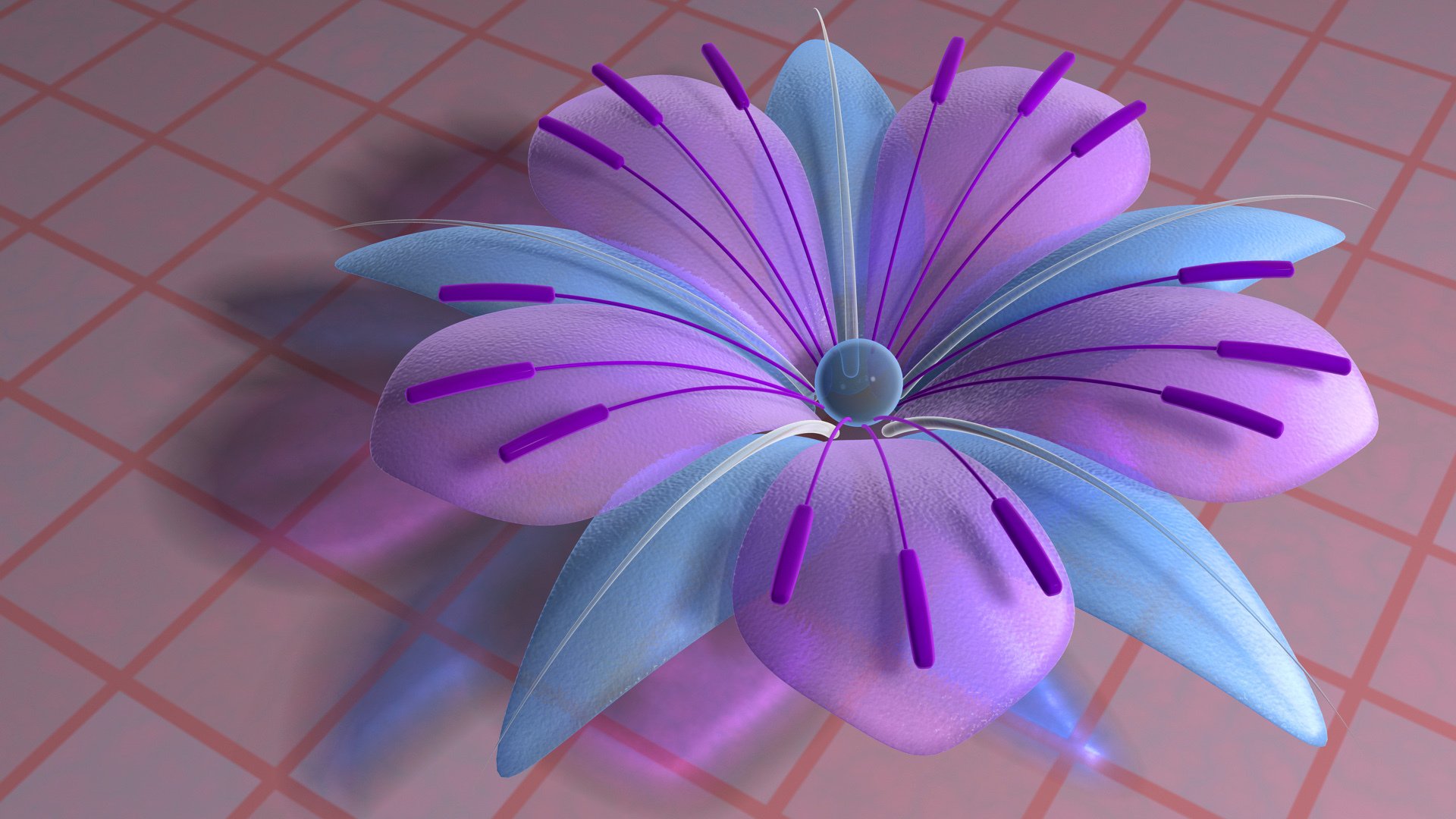 Fleurs en verre bleu avec pétales violets