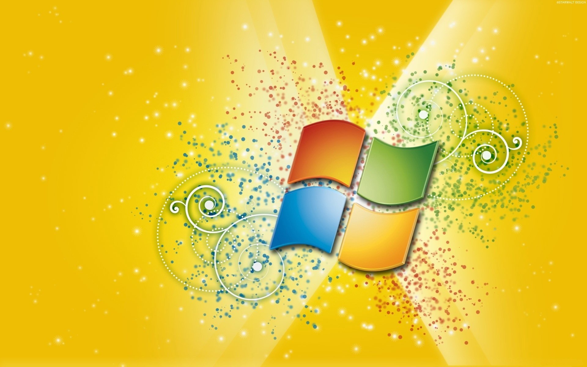 Économiseur d'écran de fenêtre avec des motifs sur fond jaune