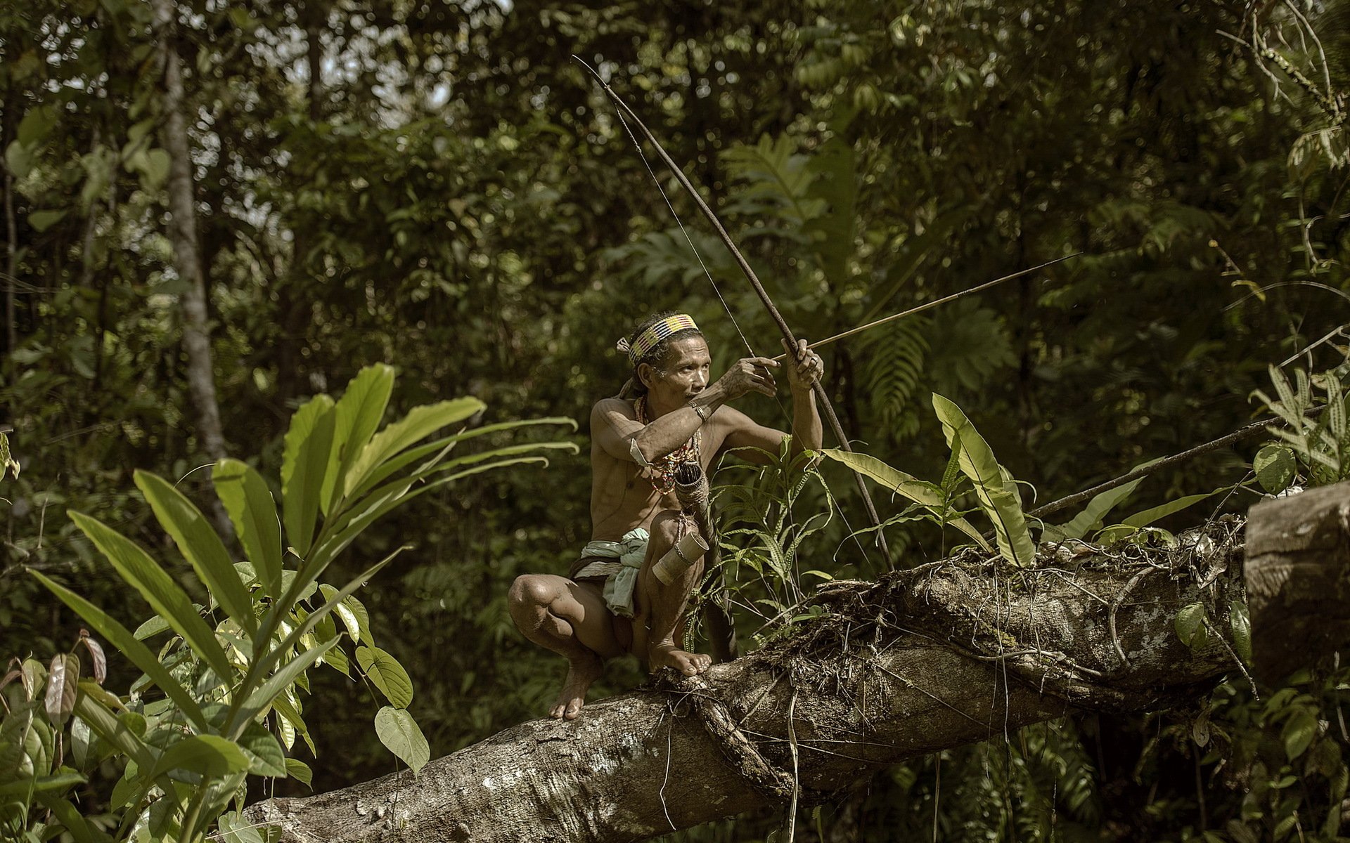 Soldat armé assis dans une embuscade