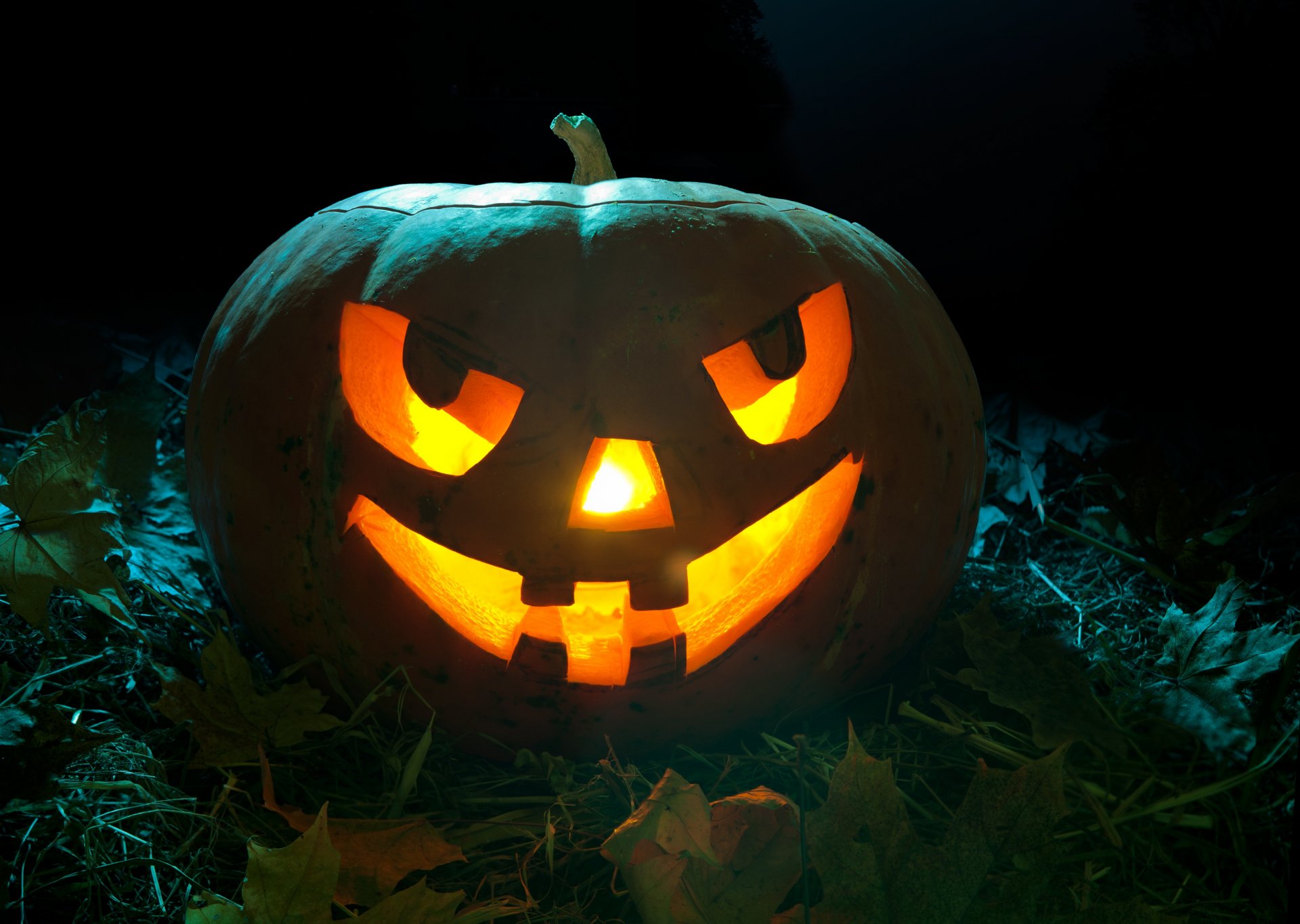 Visage dans une citrouille avec une bougie pour halloweenVisage dans une citrouille avec une bougie pour Halloween