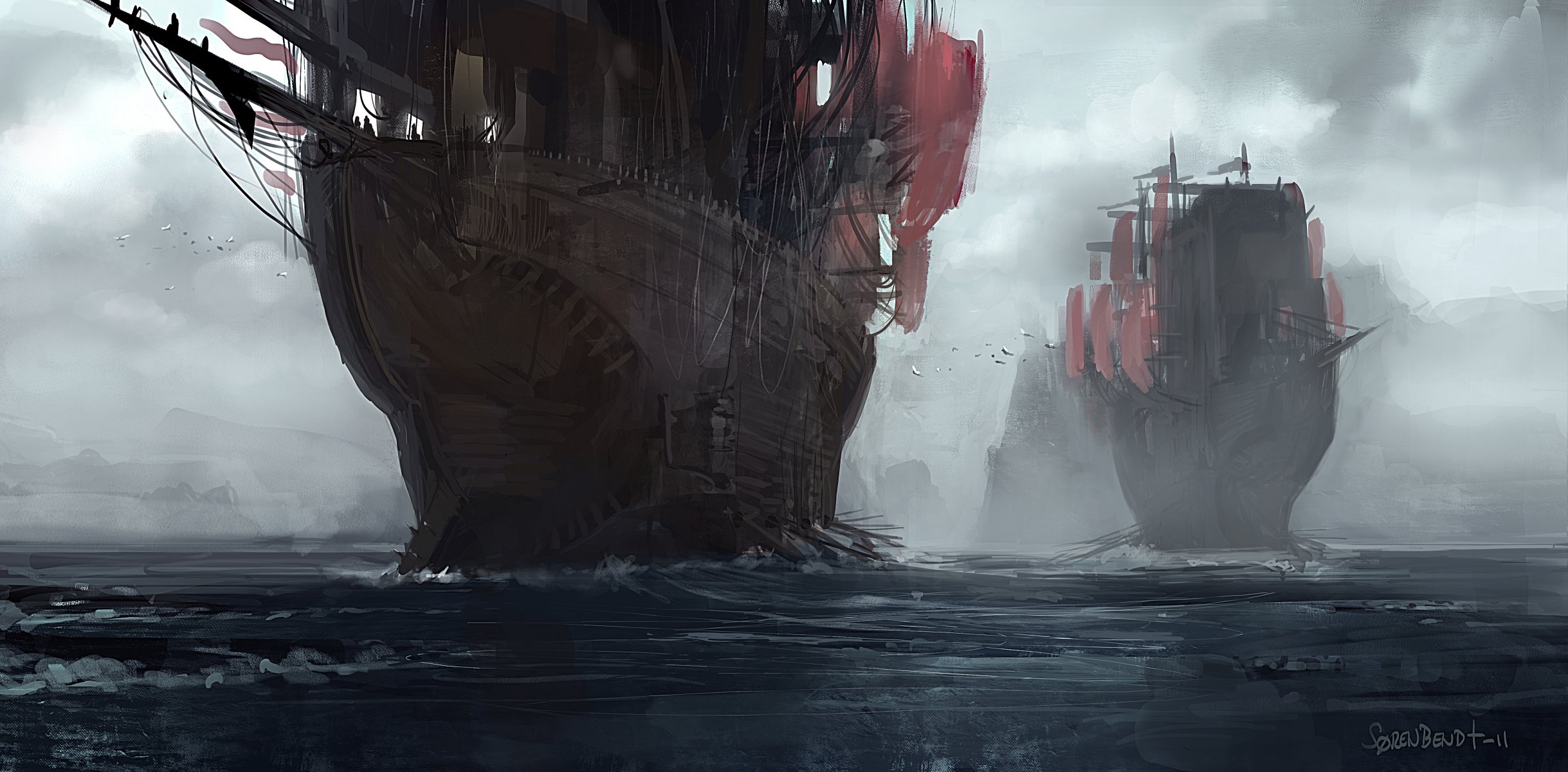 Navires à voiles rouges naviguant sur la mer