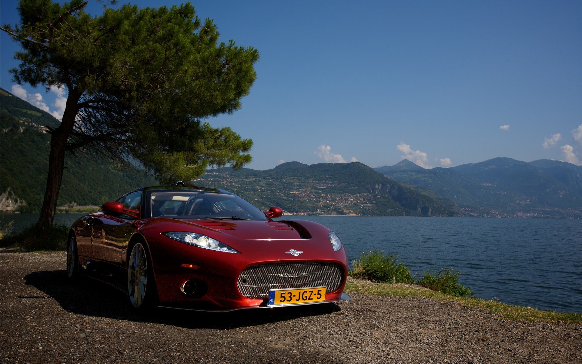 Spider voiture rouge sport se dresse sur fond d'eauSpider voiture rouge sport se dresse sur fond d'eau